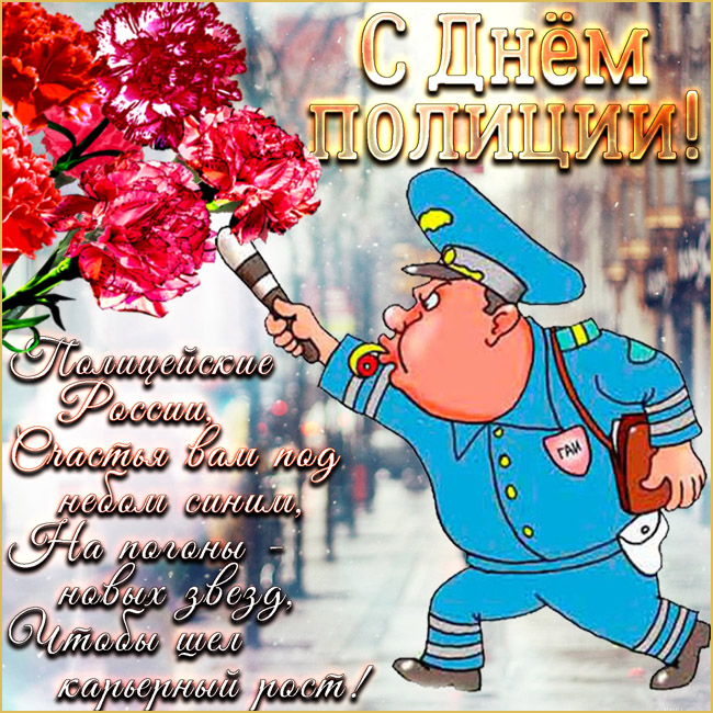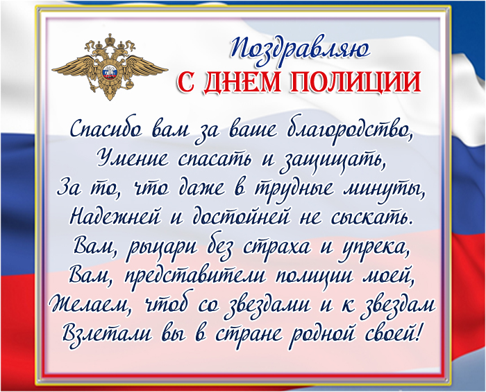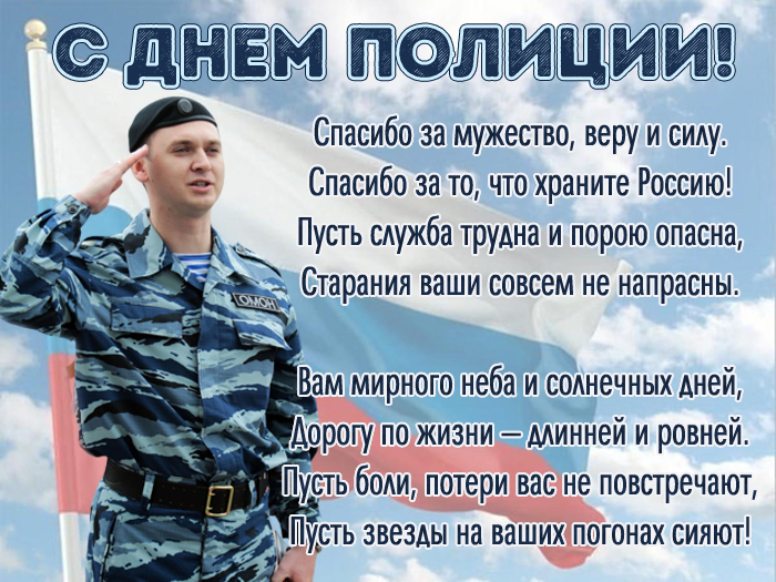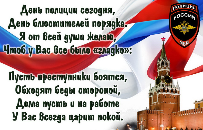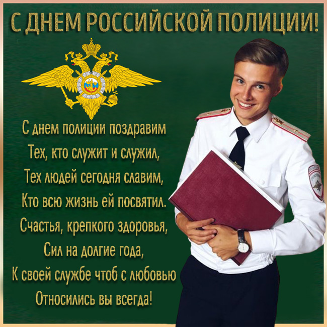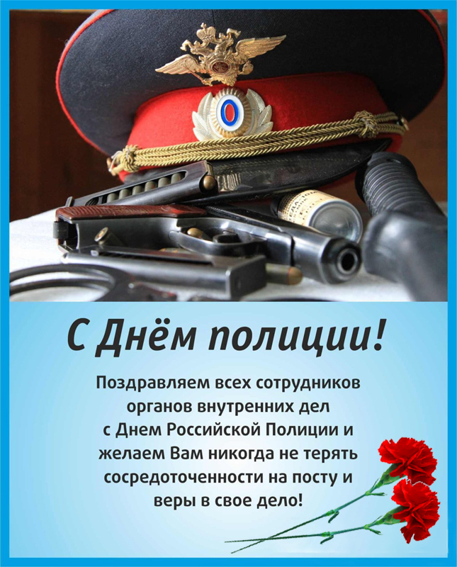 10 ноября в России отмечают День сотрудников органов внутренних дел. Предлагаем вам скачать открытки "С Днем полиции", которые мы собрали на нашем сайте. Этот праздник посвящен доблестным полицейским Российской Федерации, которые ежедневно стоят на страже правопорядка, безопасности граждан и защиты законных прав каждого человека. В этот день принято выражать искреннюю благодарность действующим сотрудникам полиции, а также ветеранам службы, которые многие годы посвятили свою жизнь охране правопорядка. Поздравьте ваших знакомых полицейских с праздником и отправьте им любую открытку из нашей коллекции.