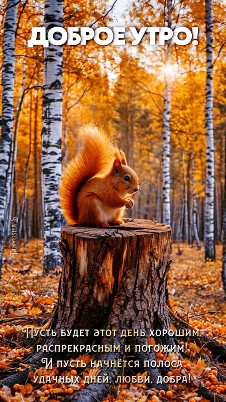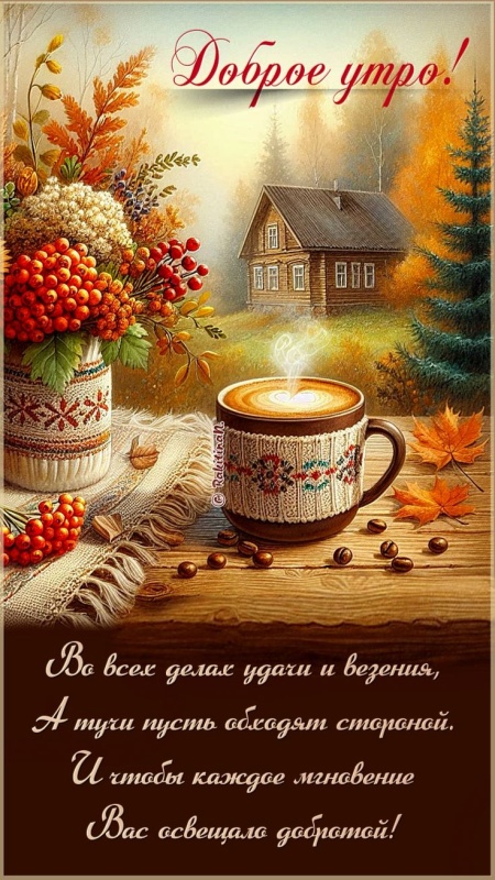 До зимы осталось всего ничего, ну а пока мы все еще проживаем осень. Вместе с нашими яркими и красивыми и позитивными картинками осеннее утро будет не таким грустным и хмурым. Итак, встречайте новую коллекцию осенних картинок "С добрым утром", которые подарят вам капельку хорошего настроения и улыбку даже в хмурый день. Яркие, сочные краски изображений повысят уровень серотонина и дофамина в вашем организме, отчего холодные дни пролетят быстро и незаметно. ) Скачивайте и делитесь этими картинками со своими друзьями, родными и близкими.