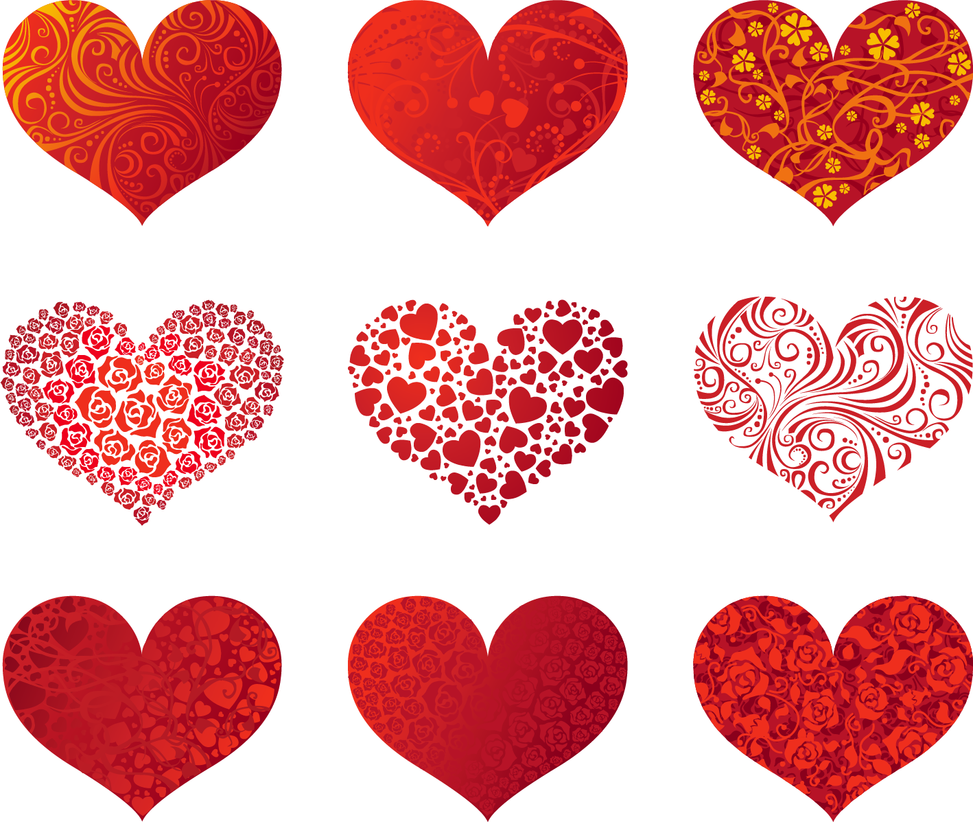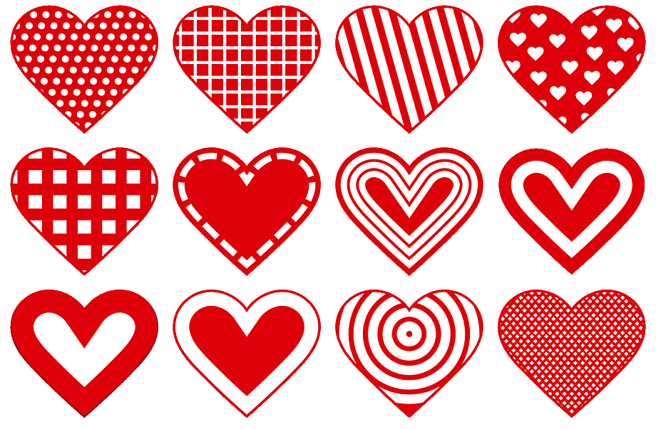 Крупная коллекция сердец разных форм и размеров. Распечатывайте, вырезайте, используйте в качестве трафаретов и шаблонов.