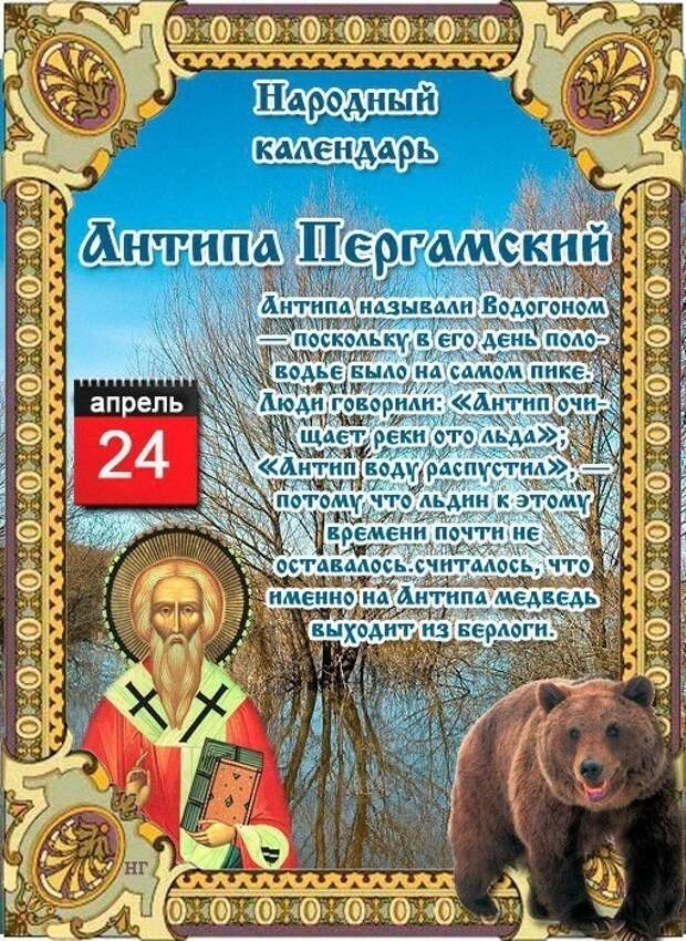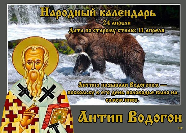 24 апреля - Антип Водогон. Отправьте картинку с поздравлениями или красивую открытку с Антипом Водогоном родным, близким, друзьям или коллегам.