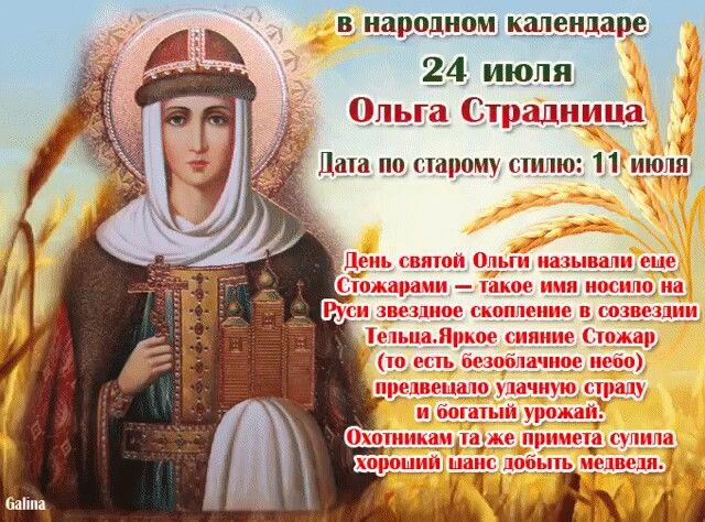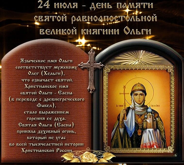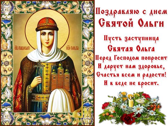 24 июля по церковному календарю отмечают День памяти святой равноапостольной княгини Ольги. По этому случаю мы собрали красивые открытки для поздравления именниниц, которые в этот день отмечают день своей святой. Красивые открытки с Днем анегла Ольги можно отправить вашей подруге или родственнице, а также любой знакомой по имени Ольга. Скачивайте бесплатно и отправляйте через мессенджер или соцсеть.