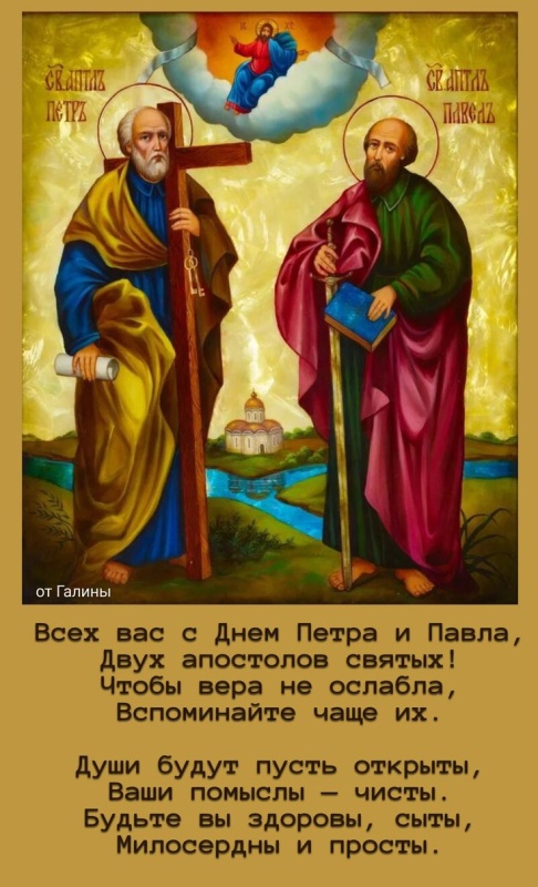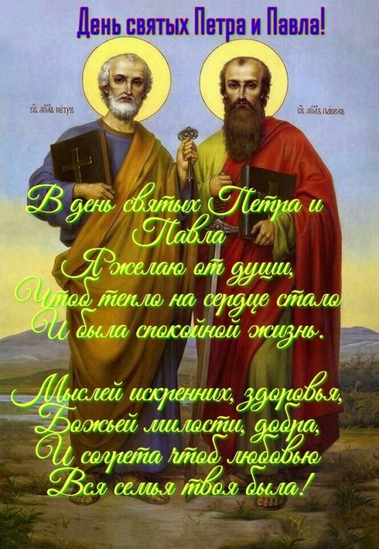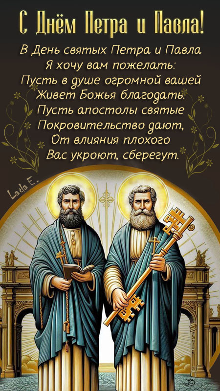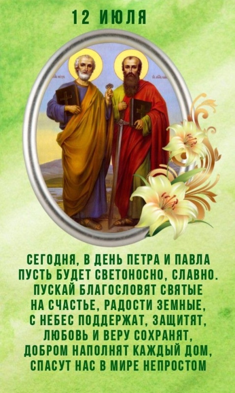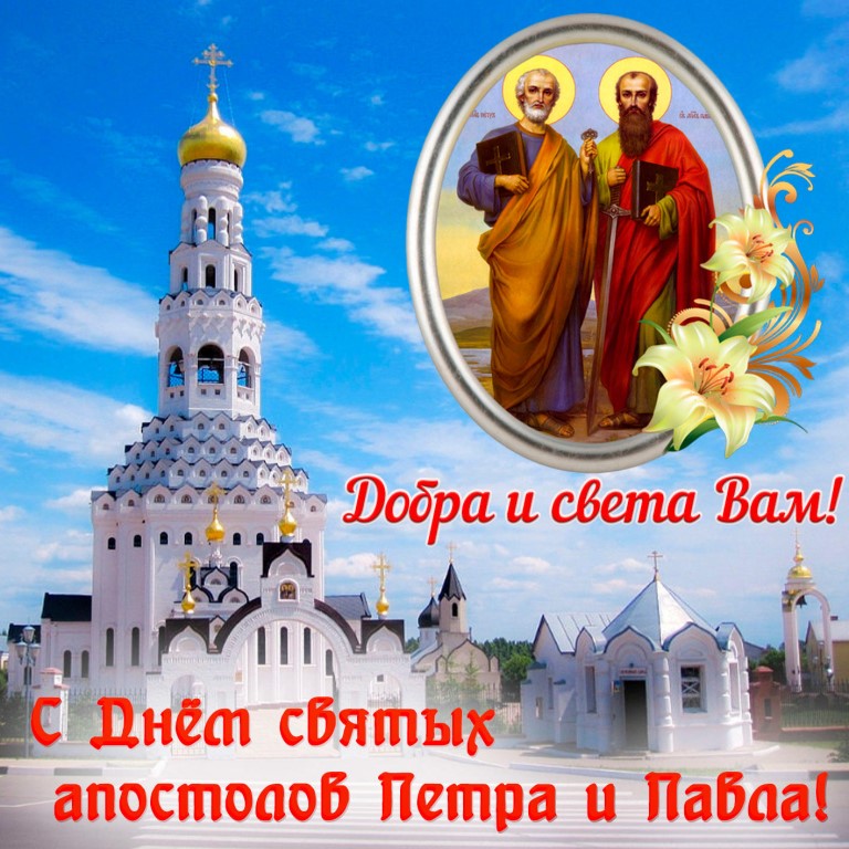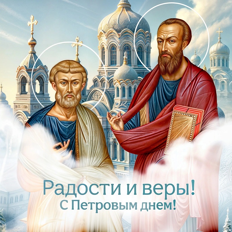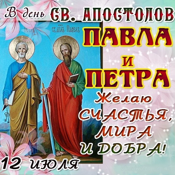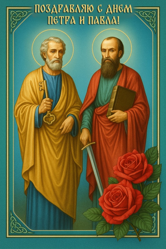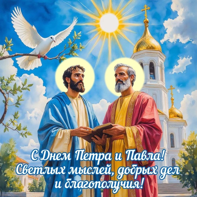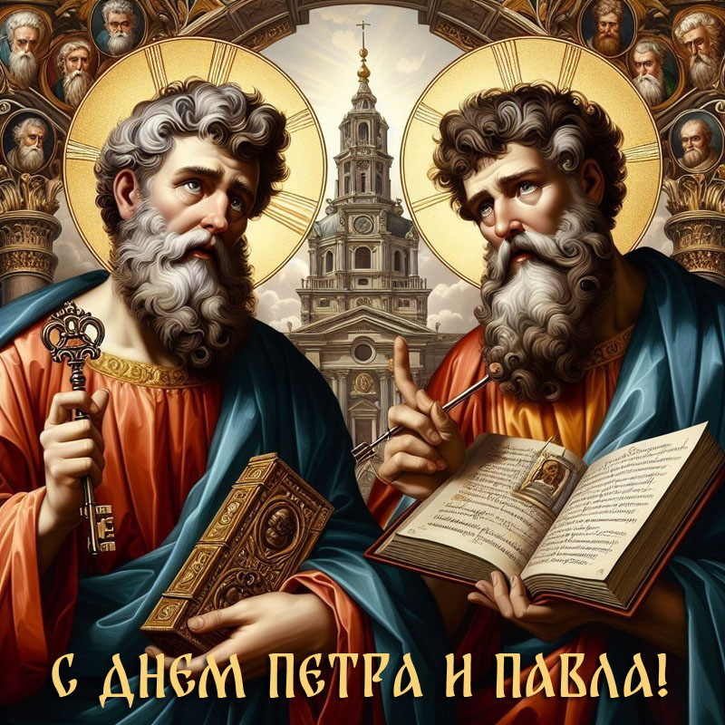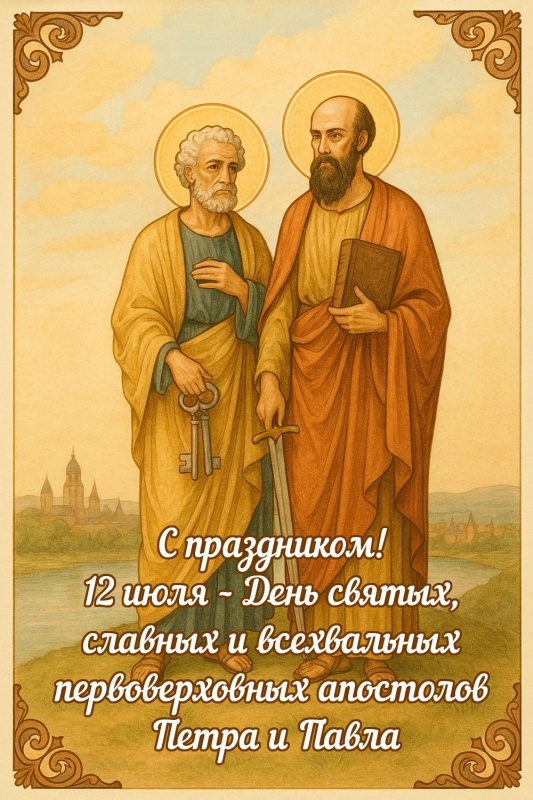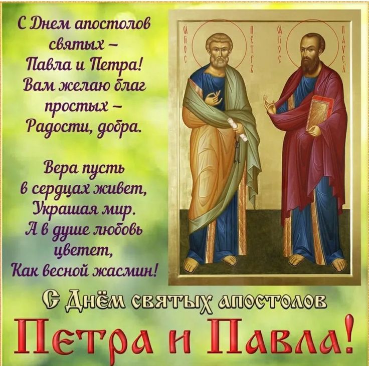 12 июля православные христиане отмечают День святых апостолов Петра и Павла — один из важнейших церковных праздников. В этот день принято поздравлять родных и друзей с пожеланиями мира, добра и духовной силы. На этой странице вы найдете красивые картинки и поздравительные открытки с изабражением Петра и Павла. Все картинки оформлены в праздничном стиле — с иконами, цветами, золотыми рамками и теплыми пожеланиями. Скачать картинки на День Петра и Павла можно бесплатно — они подойдут для публикаций в соцсетях, мессенджерах или отправки по электронной почте.