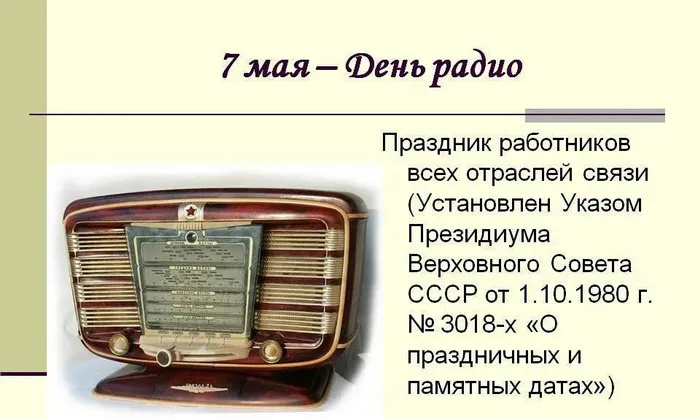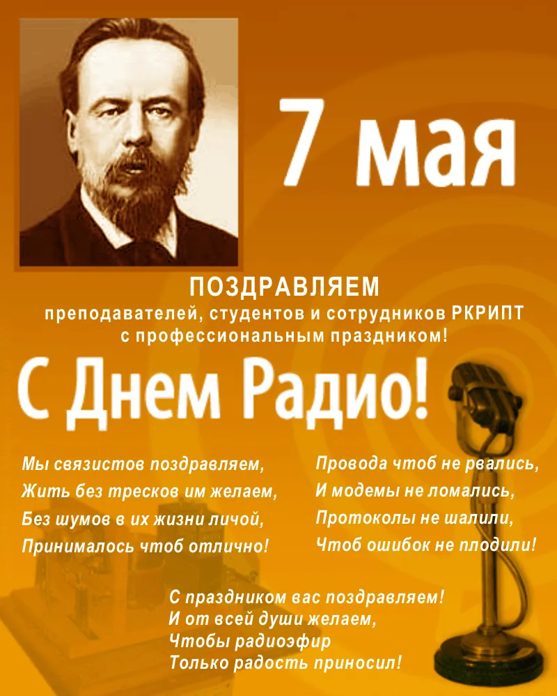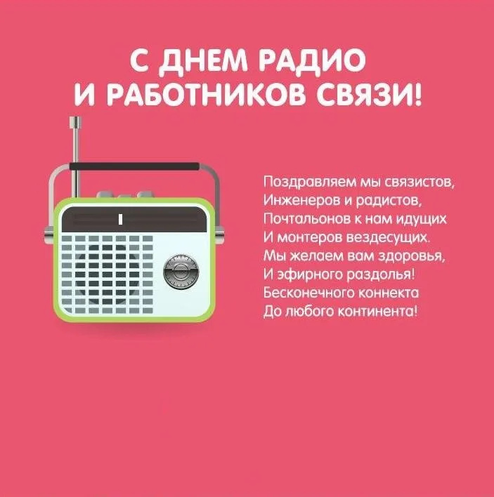 7 мая - День радио. Отправьте картинку с поздравлениями или красивую открытку с Днём радио родным, близким, друзьям или коллегам.