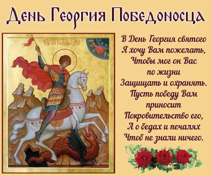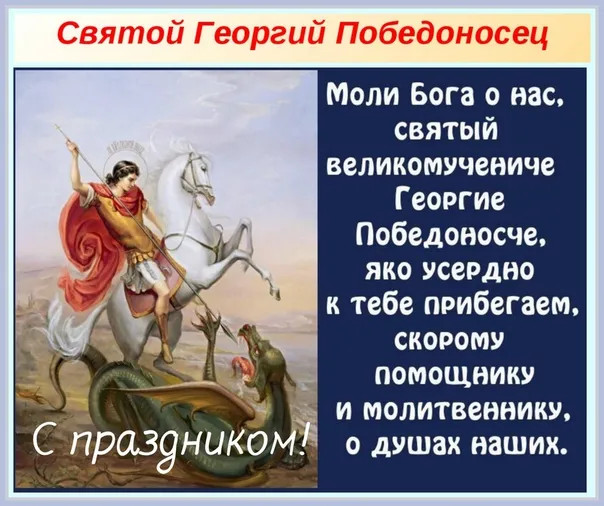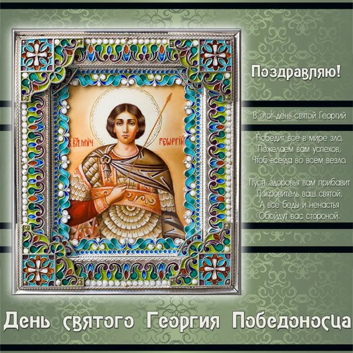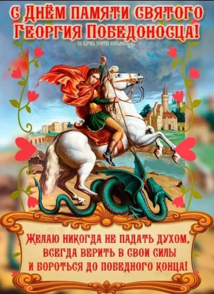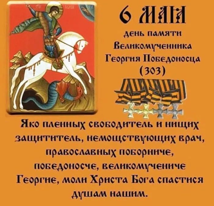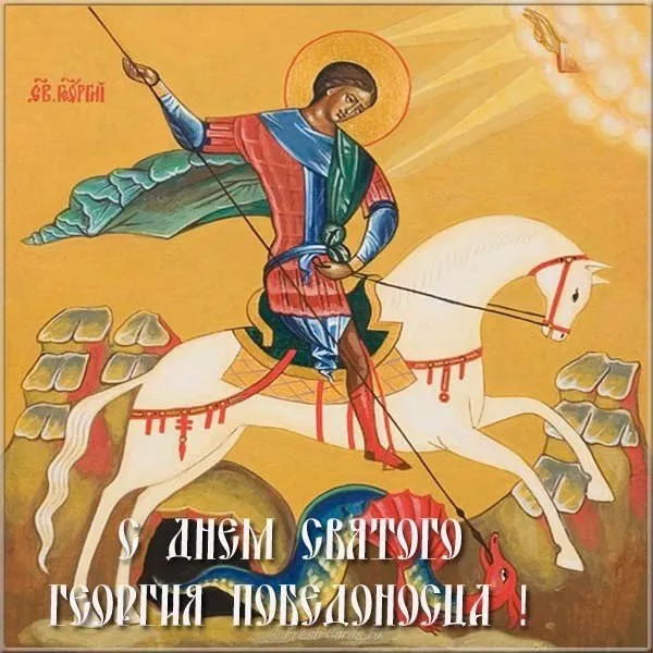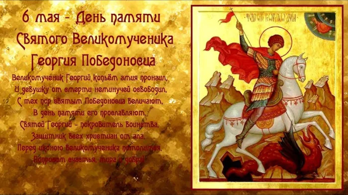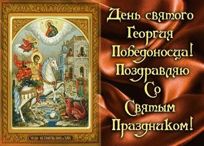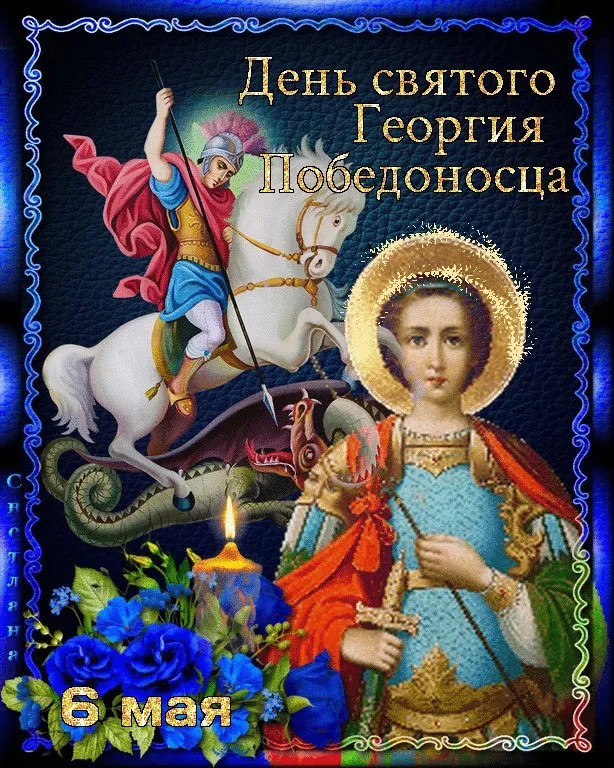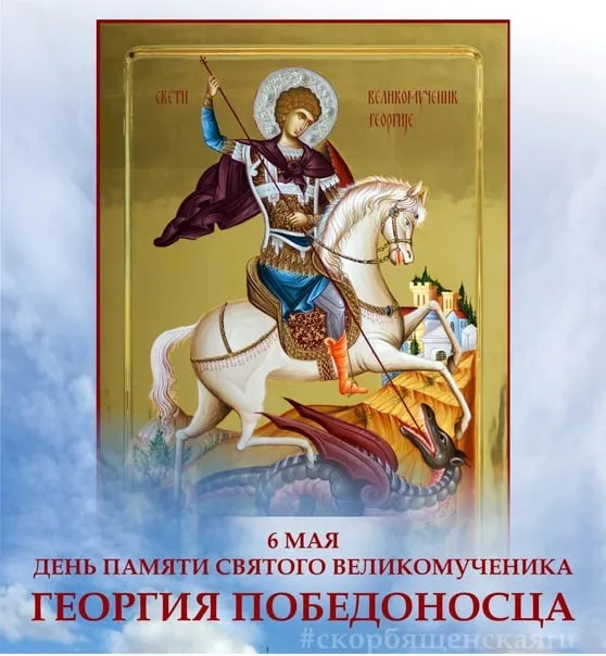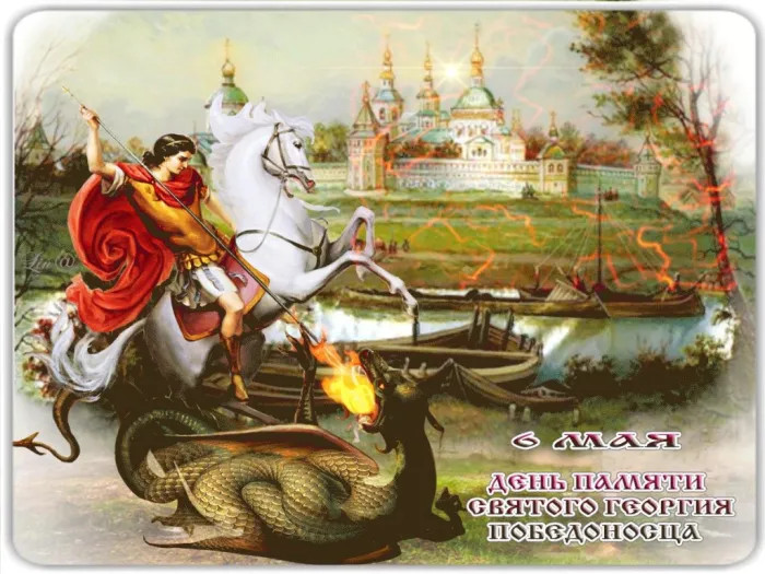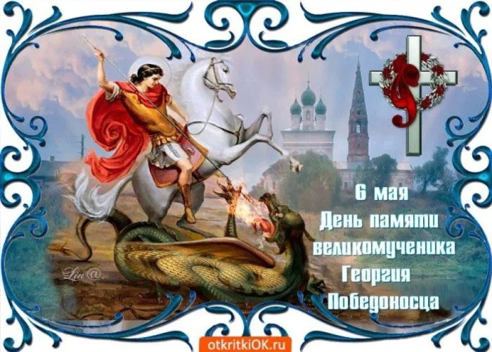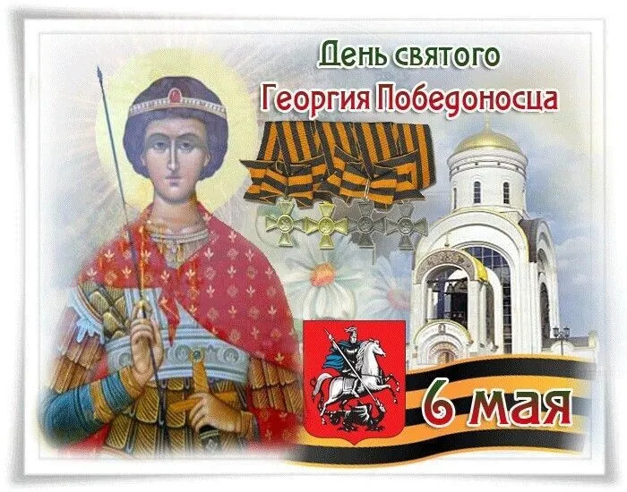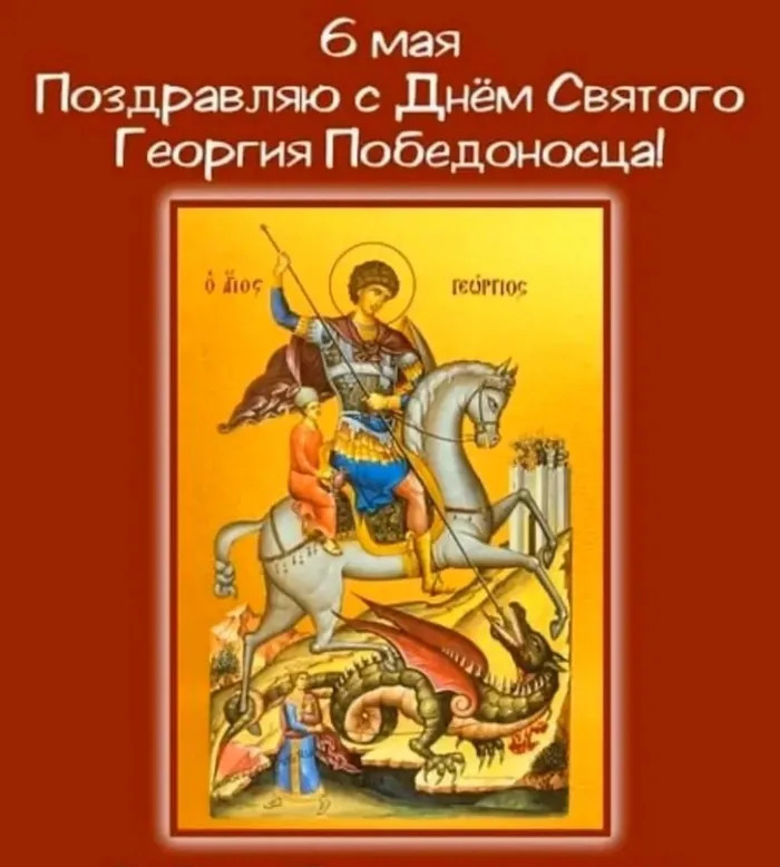 6 мая - День святого Георгия Победоносца. Отправьте картинку с поздравлениями или красивую открытку с Днём святого Георгия Победоносца родным, близким, друзьям или коллегам.