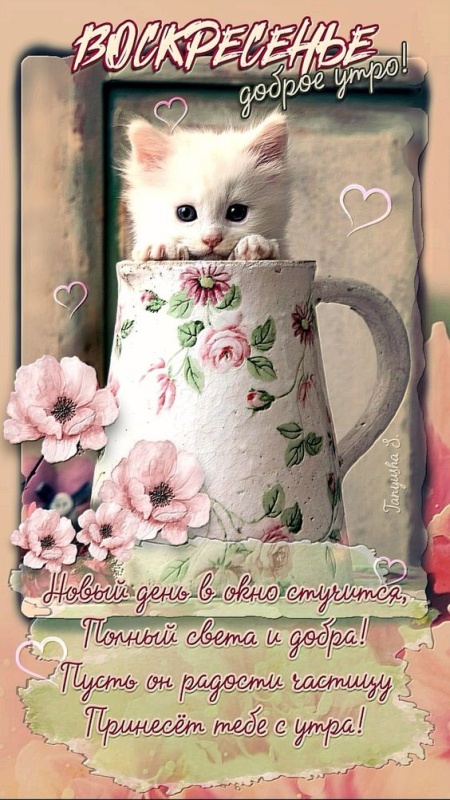 Встречайте новые и красивые картинки Доброе утро воскресенья, которые мы собрали на нашем сайте. Любую картинку можно скачать бесплатно и отправить в личный чат вашим друзьям или в групповой чат. Здесь собраны разные картинки с изображением цветов, чашечки кофе или чая, а также с милыми котиками. Также мы собрали осенние картинки с рпожеланием доброго воскреснего утра. Выбирайте на свой вкус и отправляйте кому вы хотите пожелать доброе утро в это воскресенье.