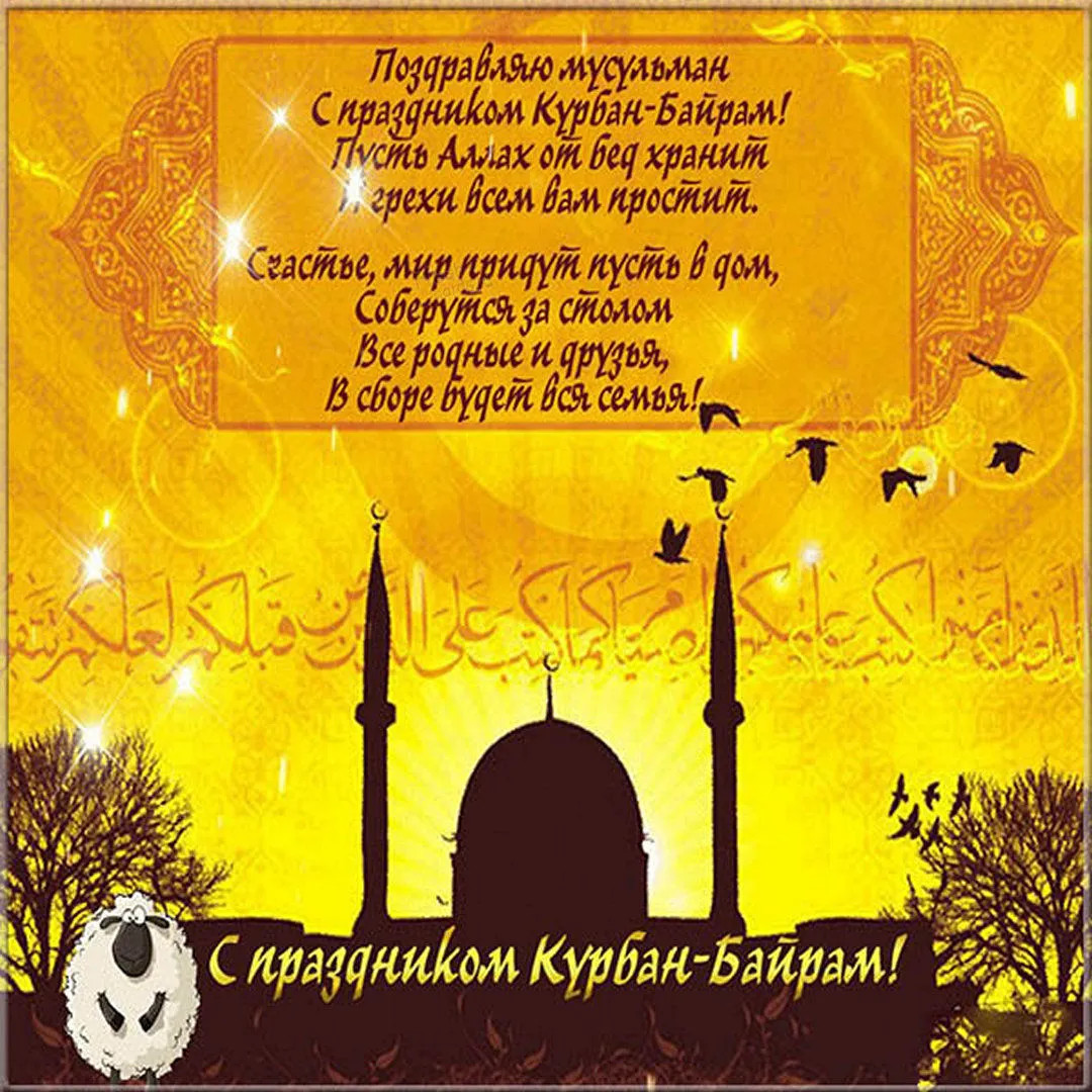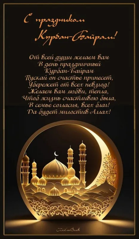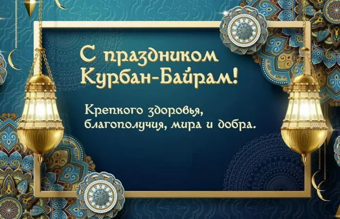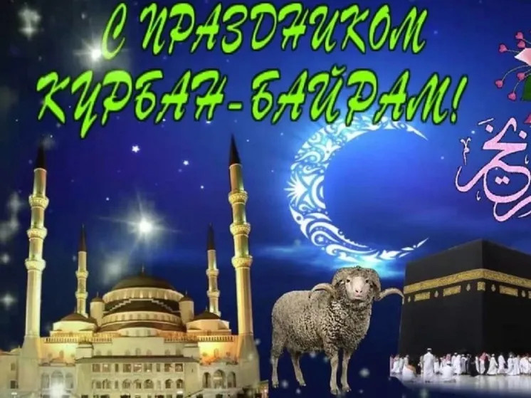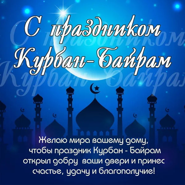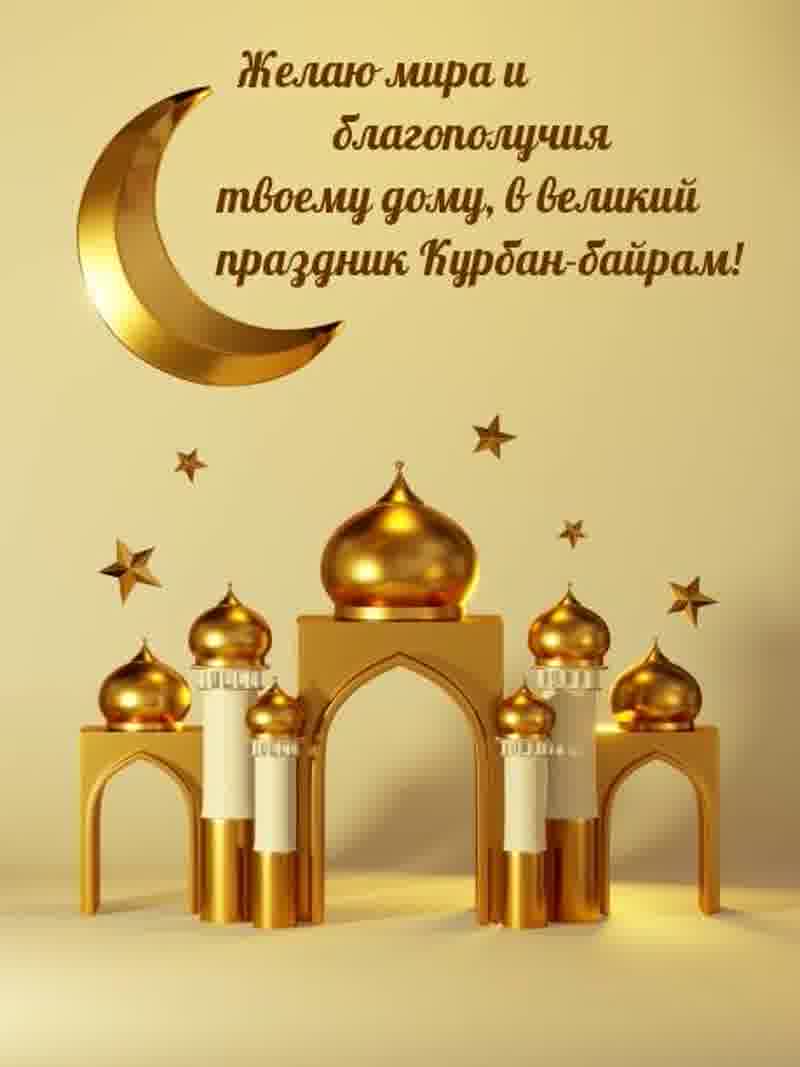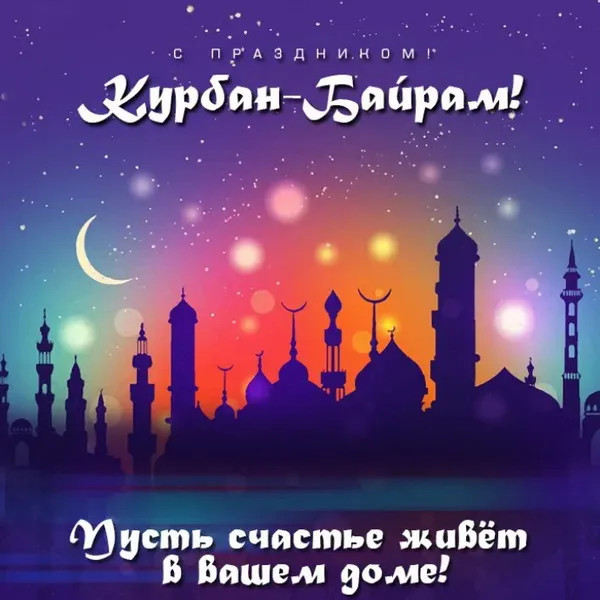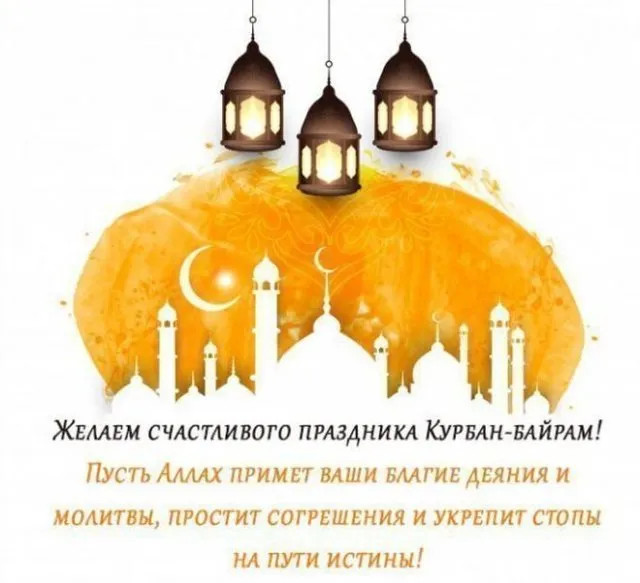 6 июня 2025 года - Курбан Байрам. Отправьте картинку с поздравлениями или красивую открытку с праздником Курбан-байрам родным, близким, друзьям или коллегам.