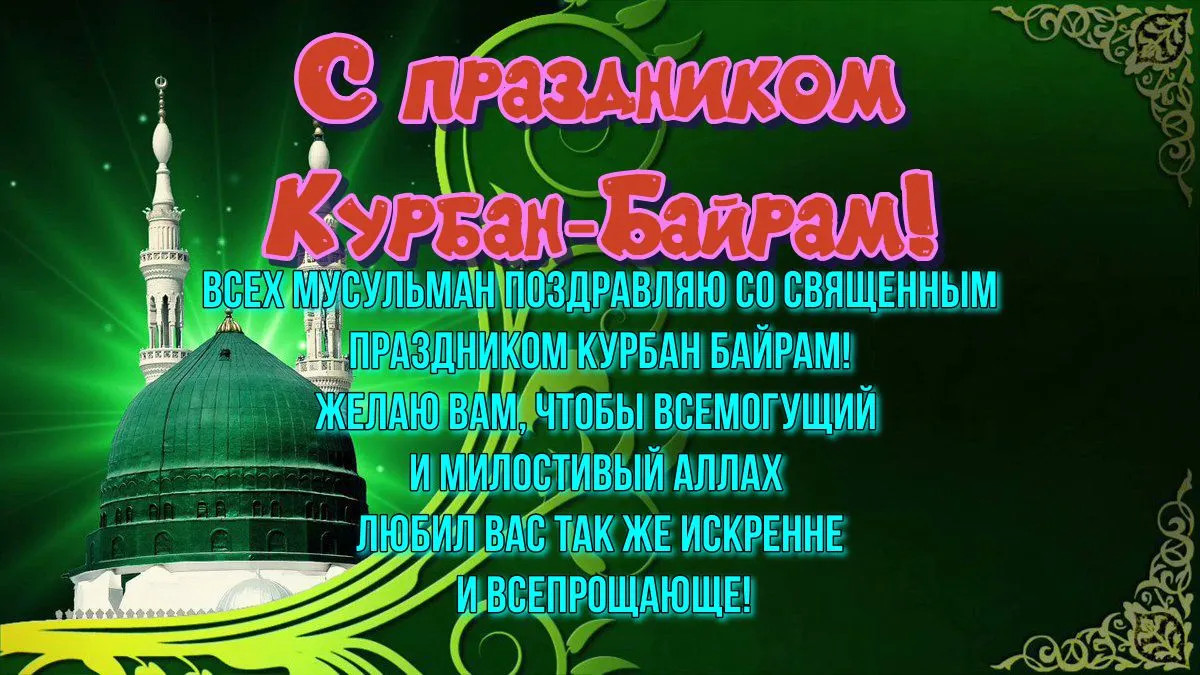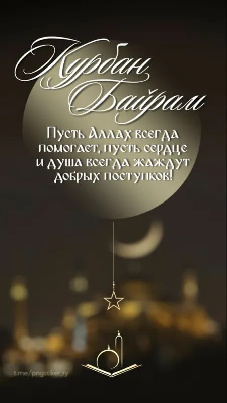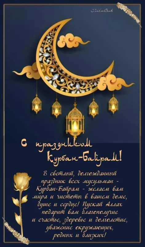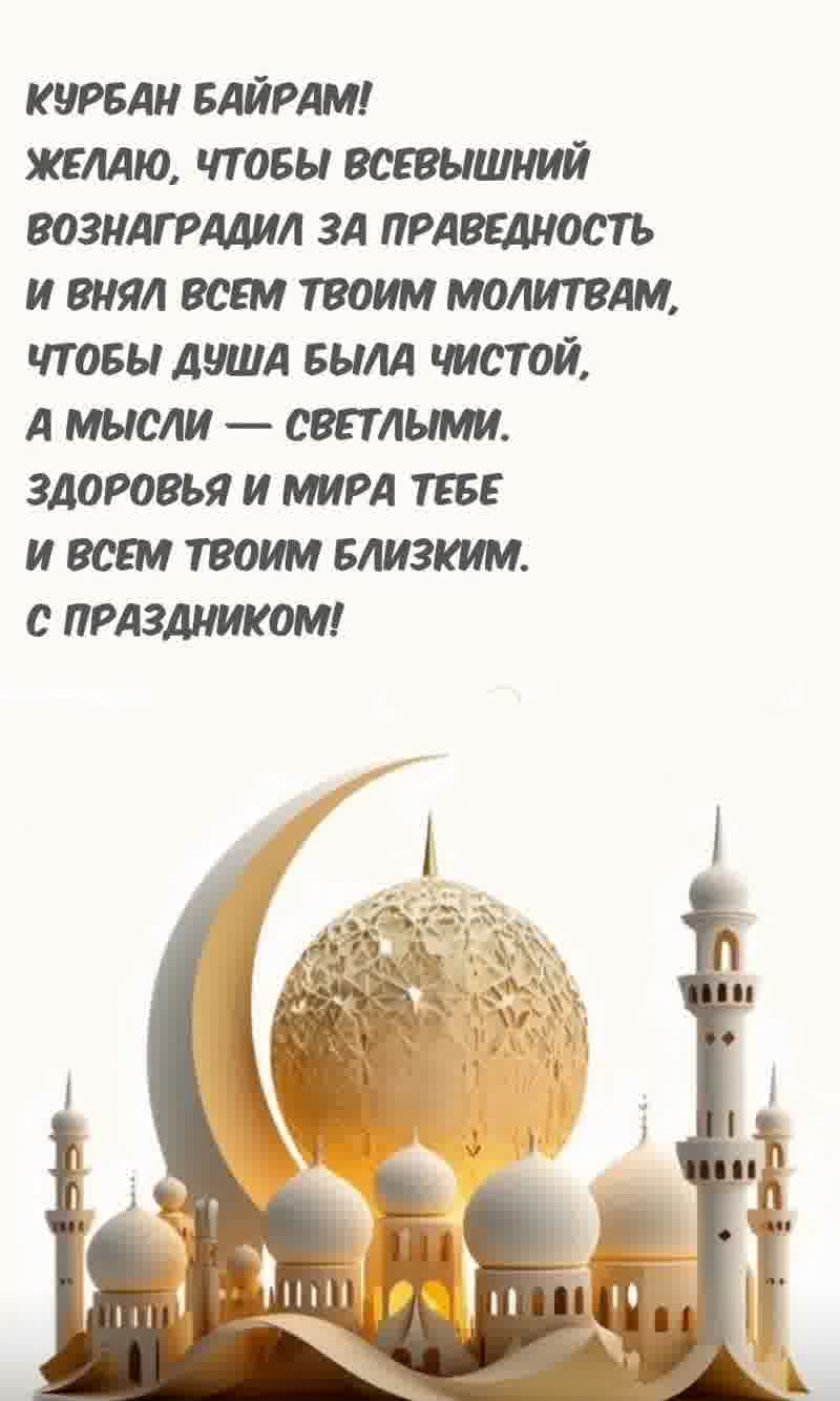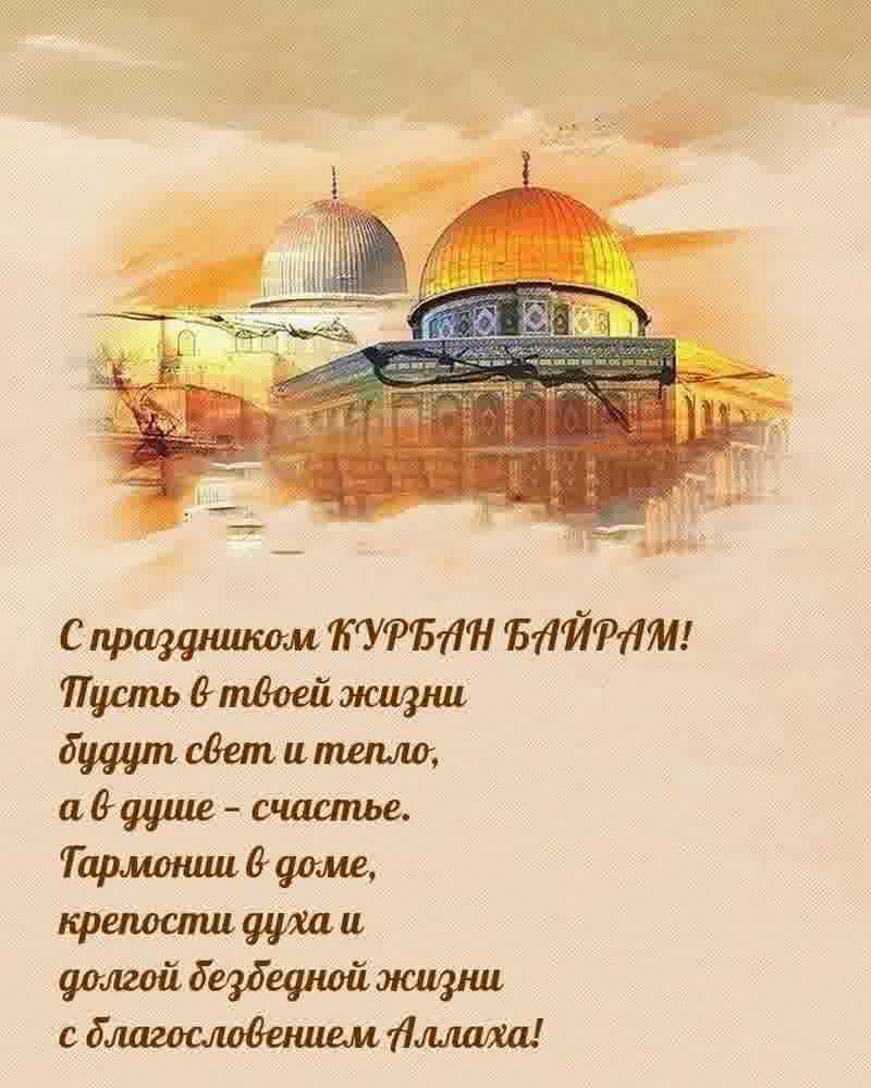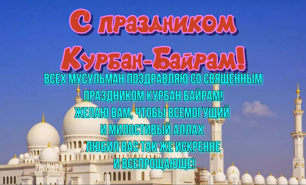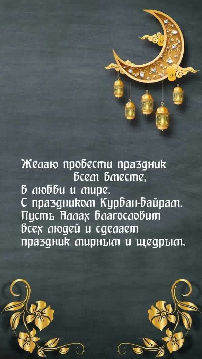 6 июня 2025 года - Курбан Байрам. Отправьте картинку с поздравлениями или красивую открытку с праздником Курбан-байрам родным, близким, друзьям или коллегам.