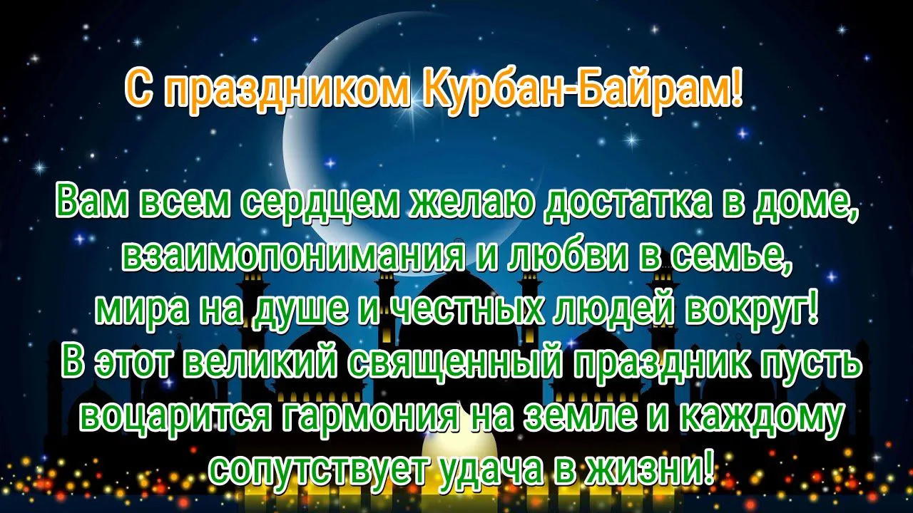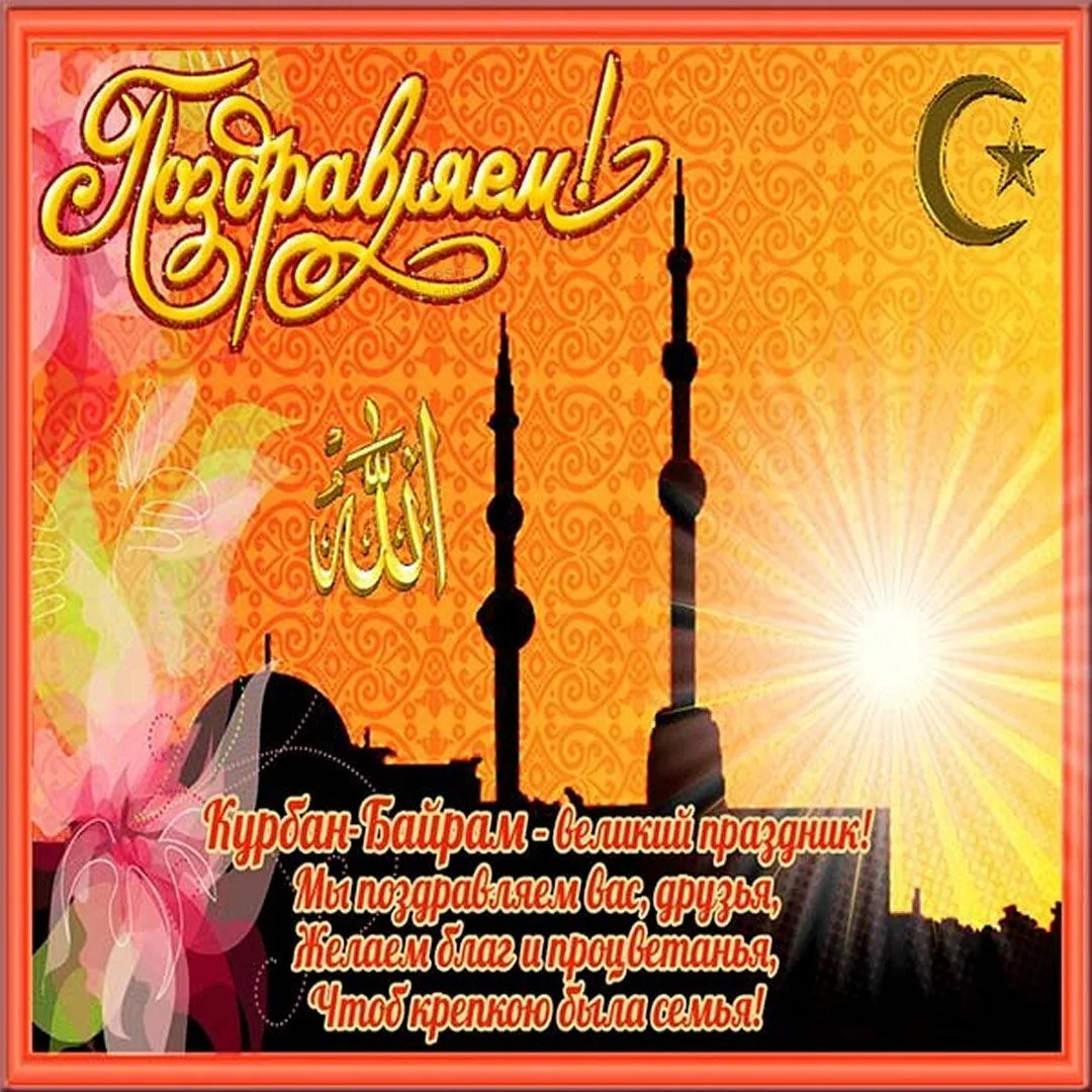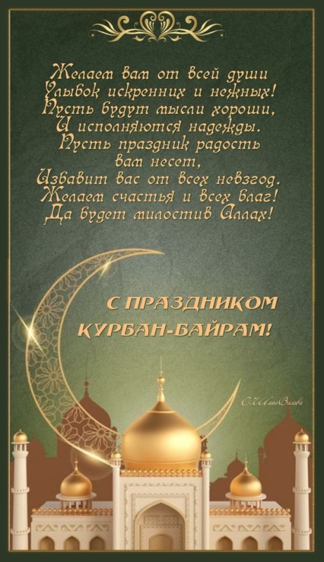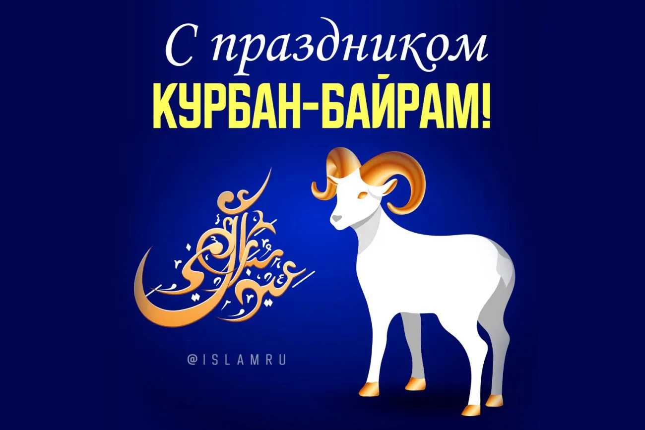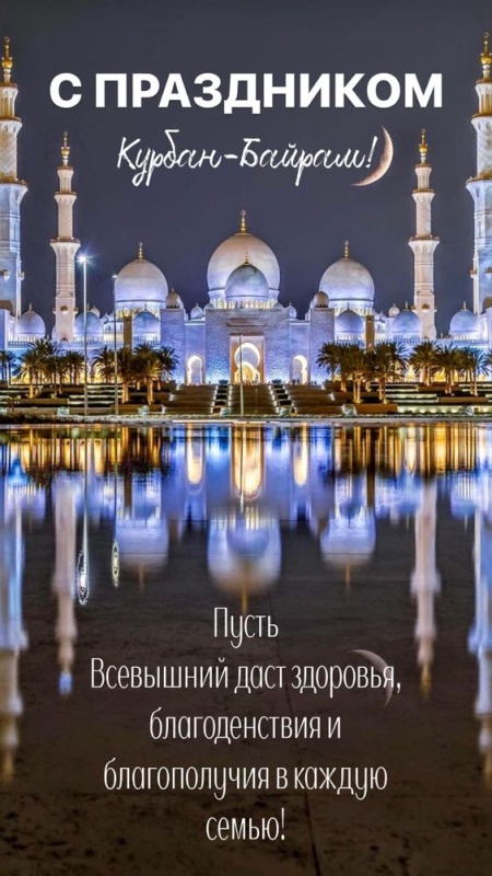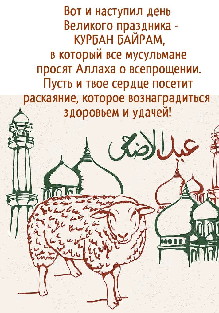 6 июня 2025 года - Курбан Байрам. Отправьте картинку с поздравлениями или красивую открытку с праздником Курбан-байрам родным, близким, друзьям или коллегам.