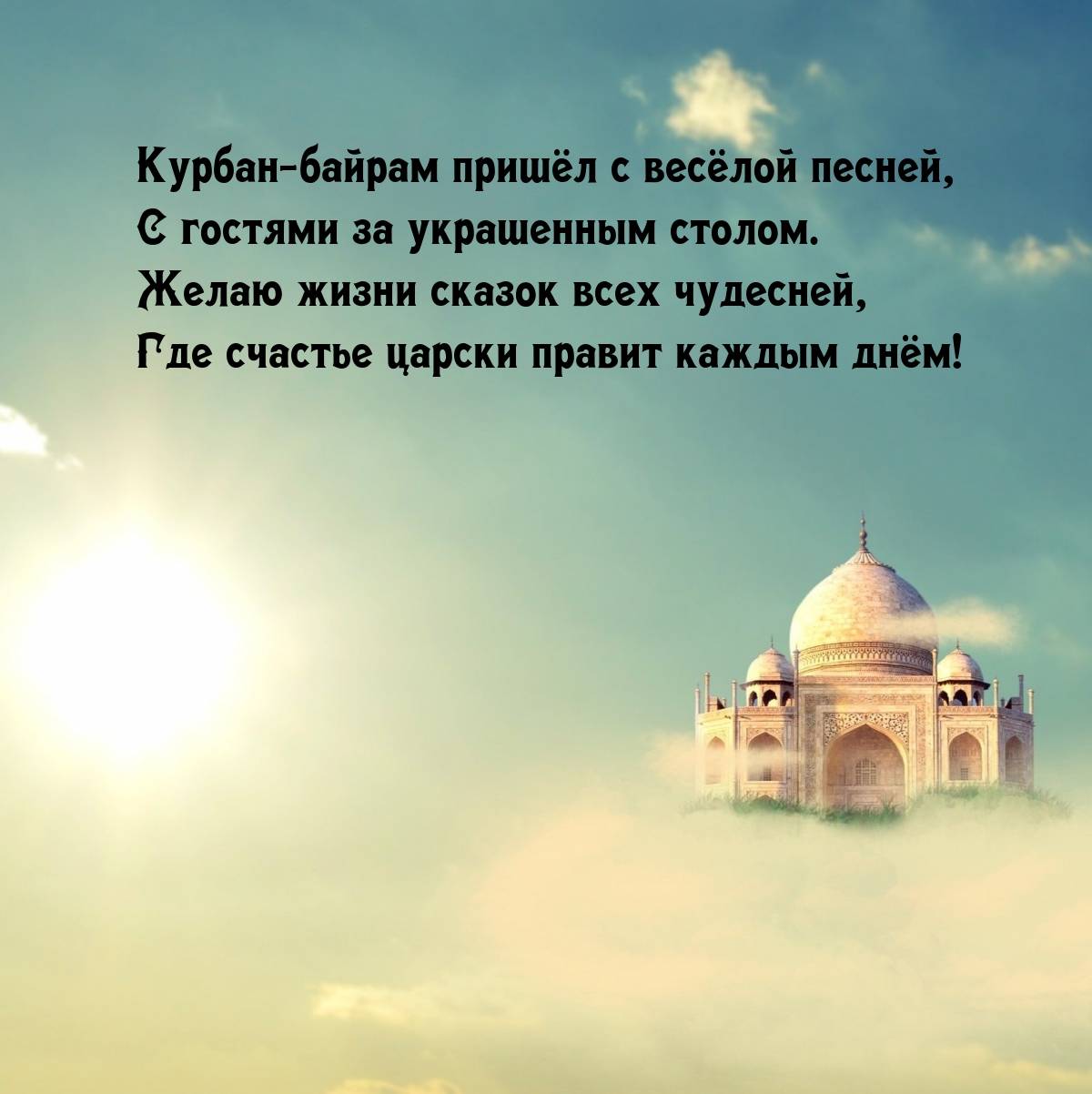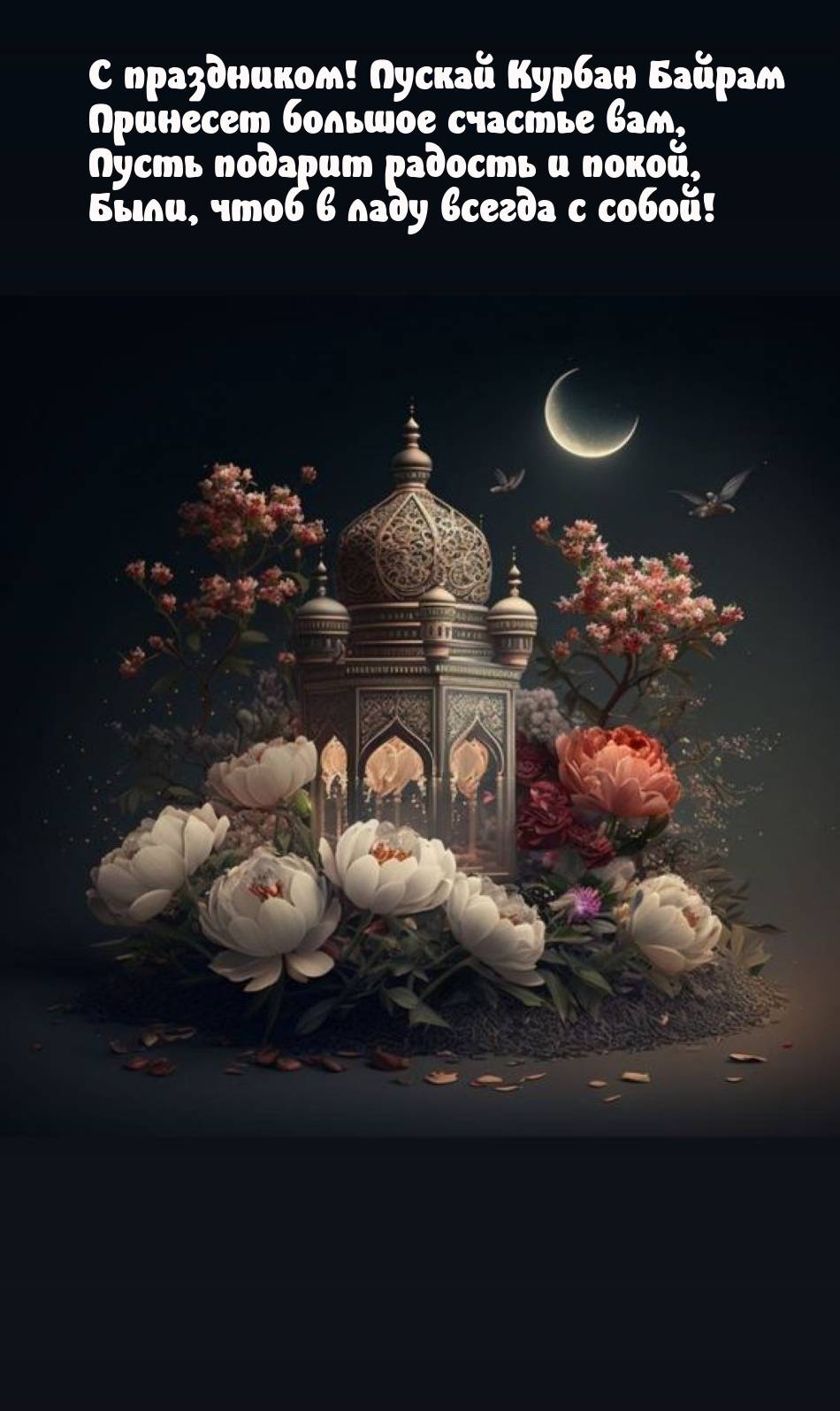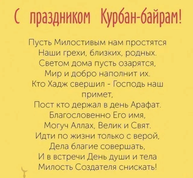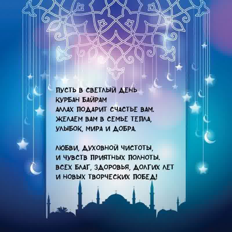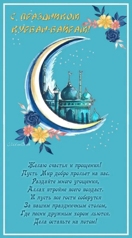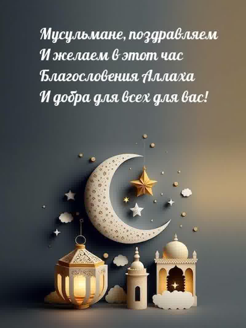 6 июня 2025 года - Курбан Байрам. Отправьте картинку с поздравлениями или красивую открытку с праздником Курбан-байрам родным, близким, друзьям или коллегам.