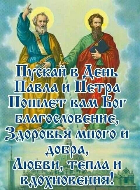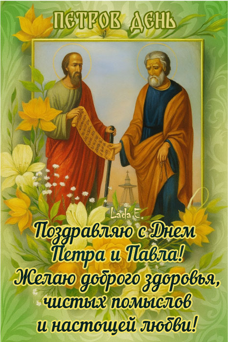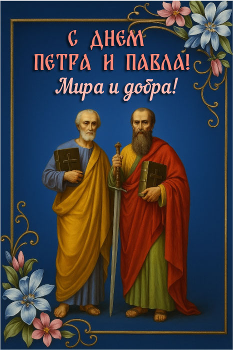 12 июля православные христиане отмечают Петров день, который посвящен памяти святых апостолов Петра и Павла. Мы собрали для вас красивые открытки для поздравления с этим праздником и желаем все мира, добра и благополучия. Скачивайте бесплатно любые открытки на петров день и отправляйте своим родным и близким. Смотрите также красивые и новые открытки на День Петра и Павла.