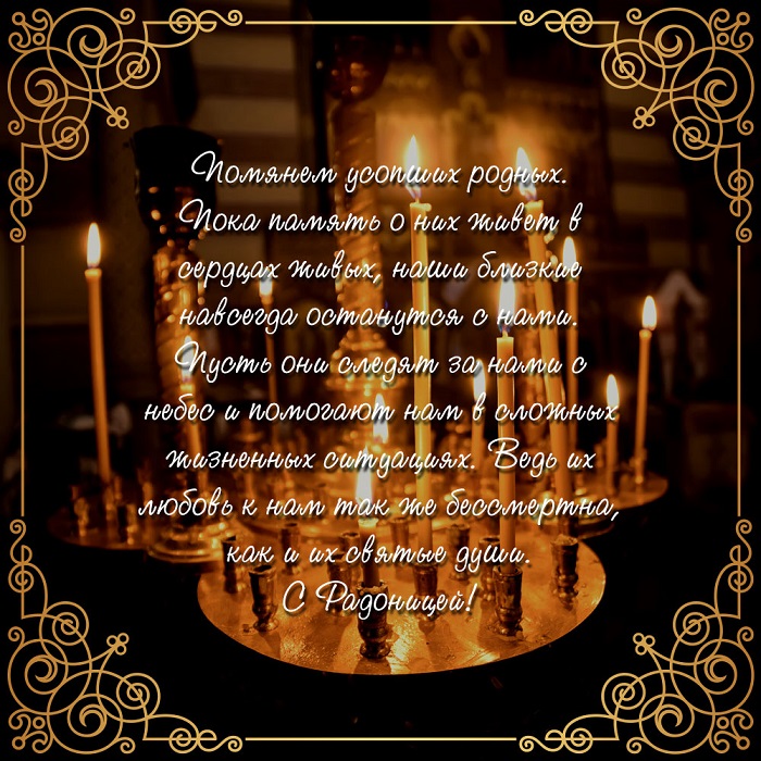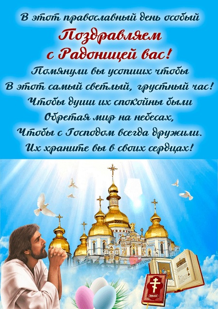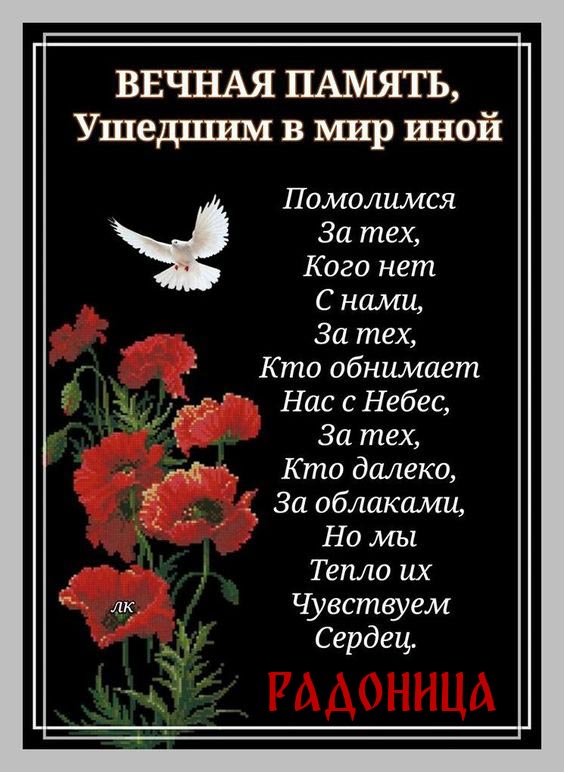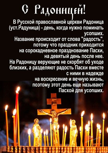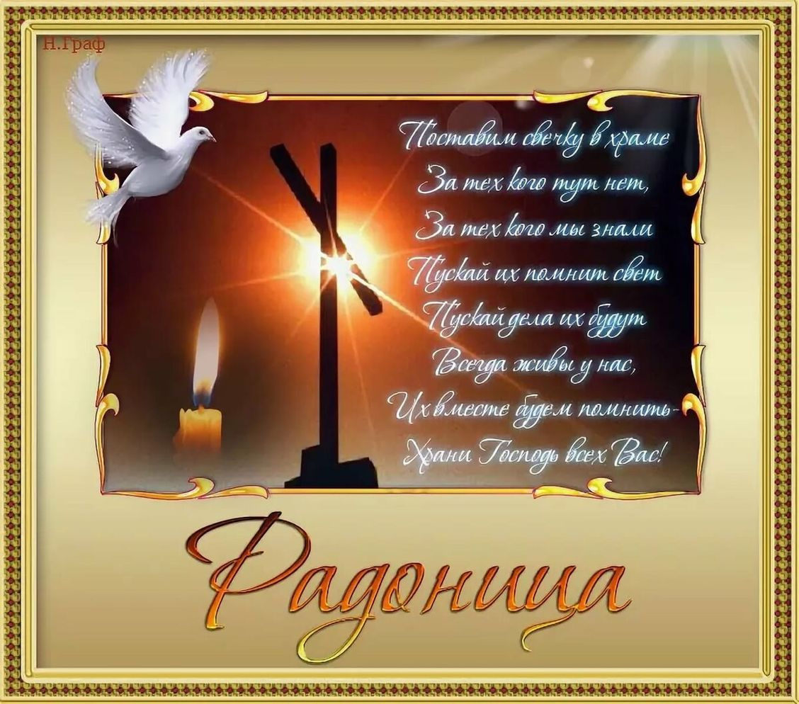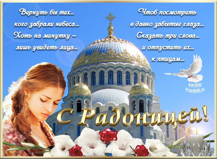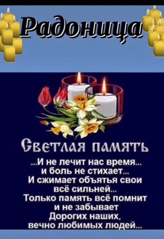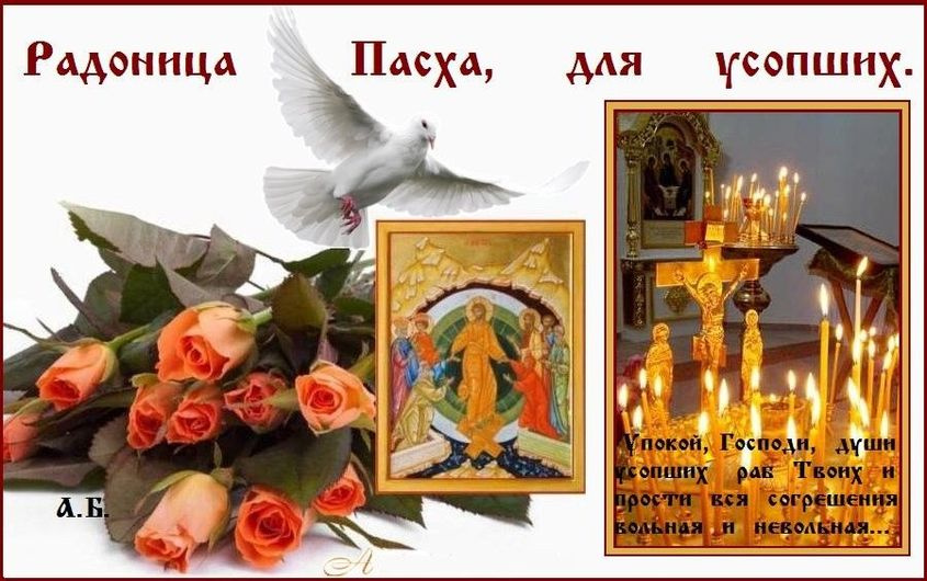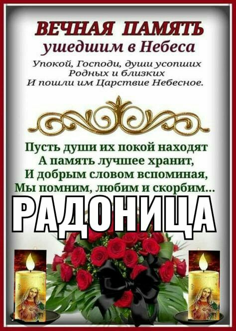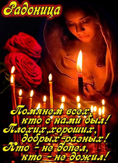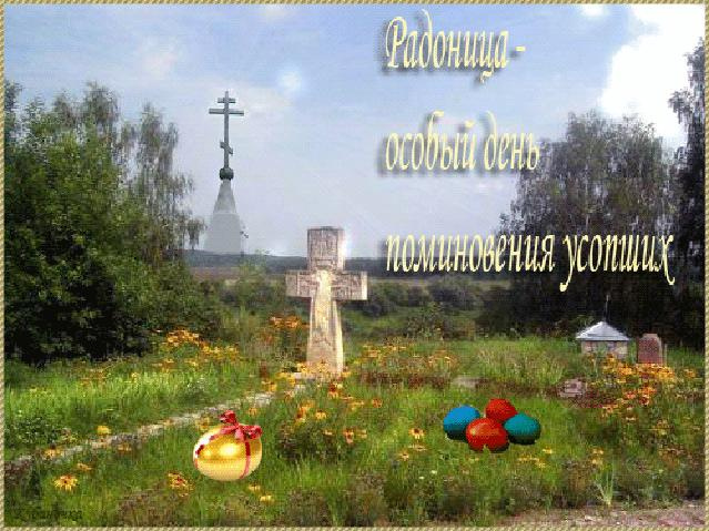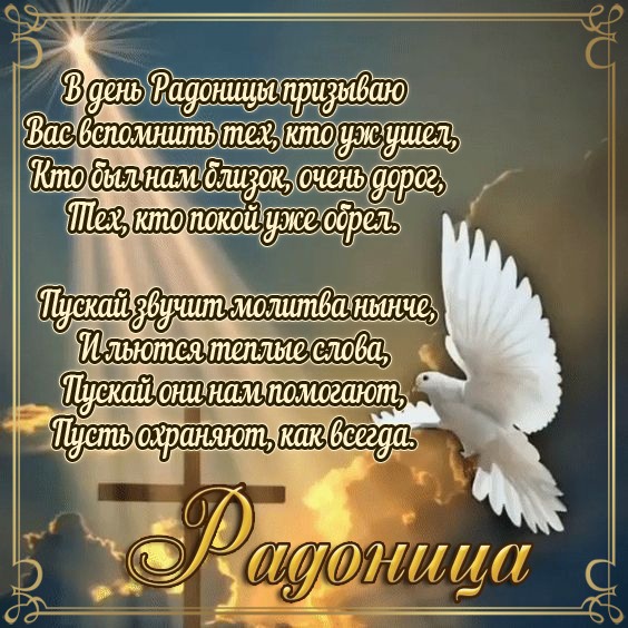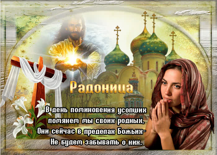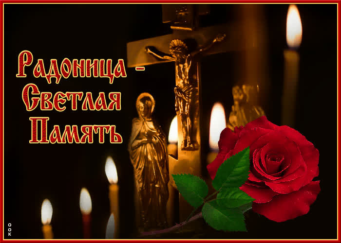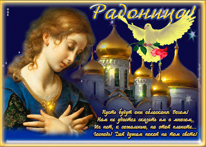 29 апреля 2025 года - Радоница - родительский день - день особого поминовения усопших. Скачайте красивую картинку с надписью, мерцающую открытку или анимированную гифку с Радоницей.