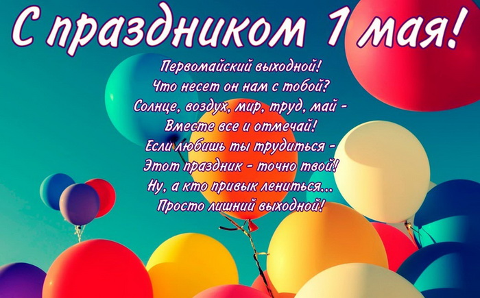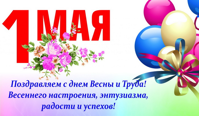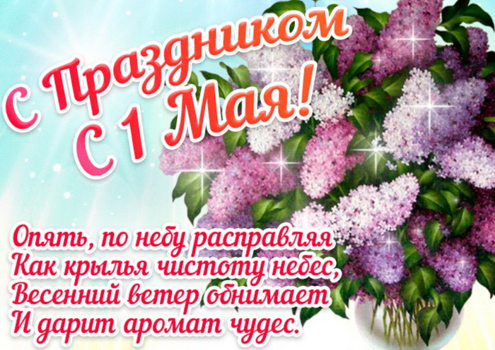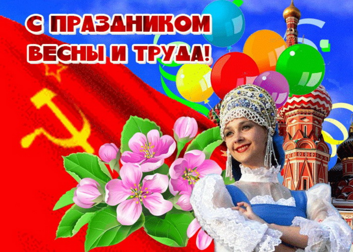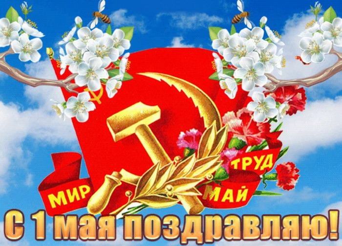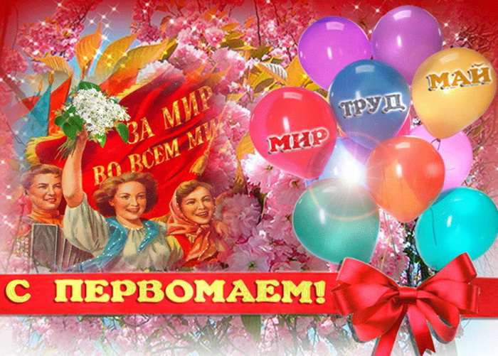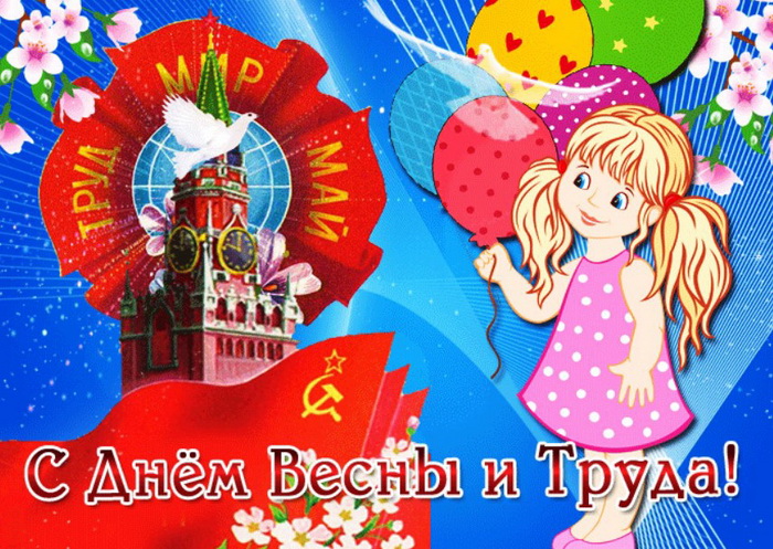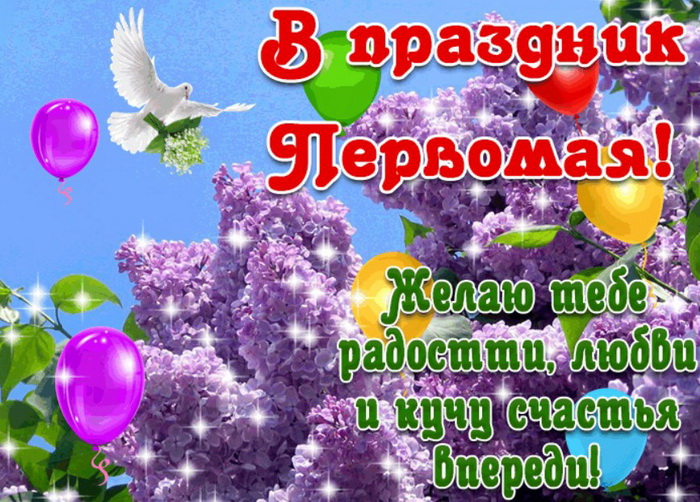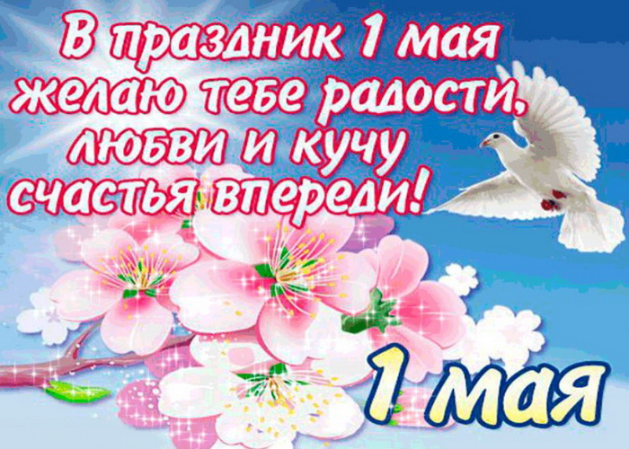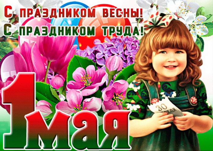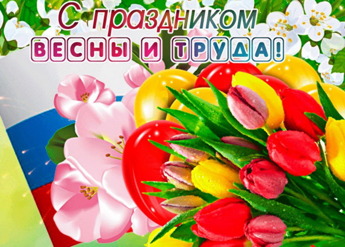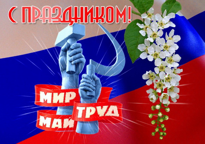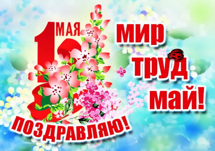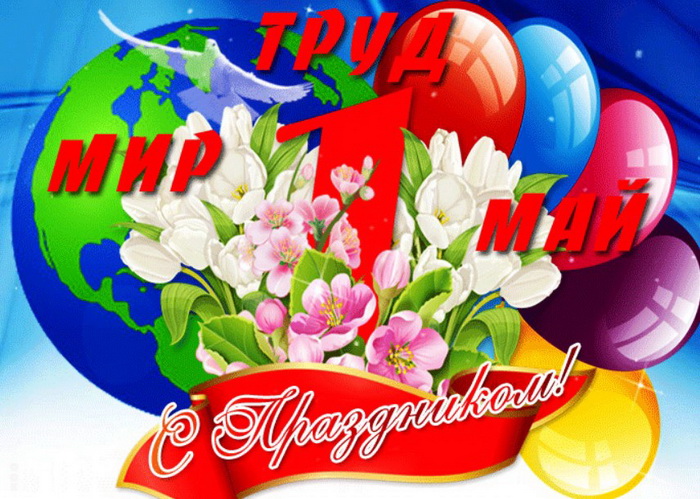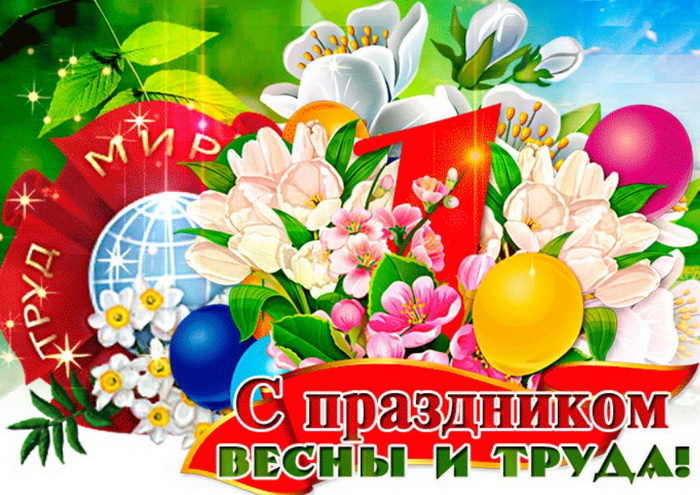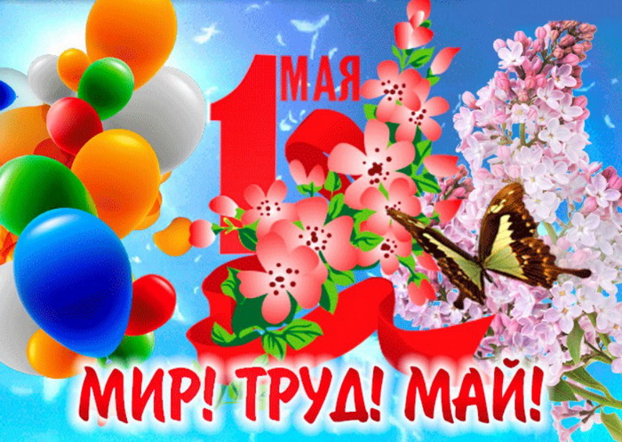 1 мая - Праздник Весны и Труда. Отправьте картинку с поздравлениями "Мир, труд, май" или красивую открытку с Первомаем родным, близким, друзьям или коллегам.