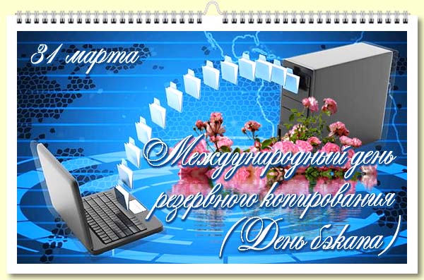 31 марта - Международный день резервного копирования (День бэкапа). Отправьте картинку с поздравлениями или красивую открытку с Днём резервного копирования (с Днём бэкапа) родным, близким, друзьям или коллегам.