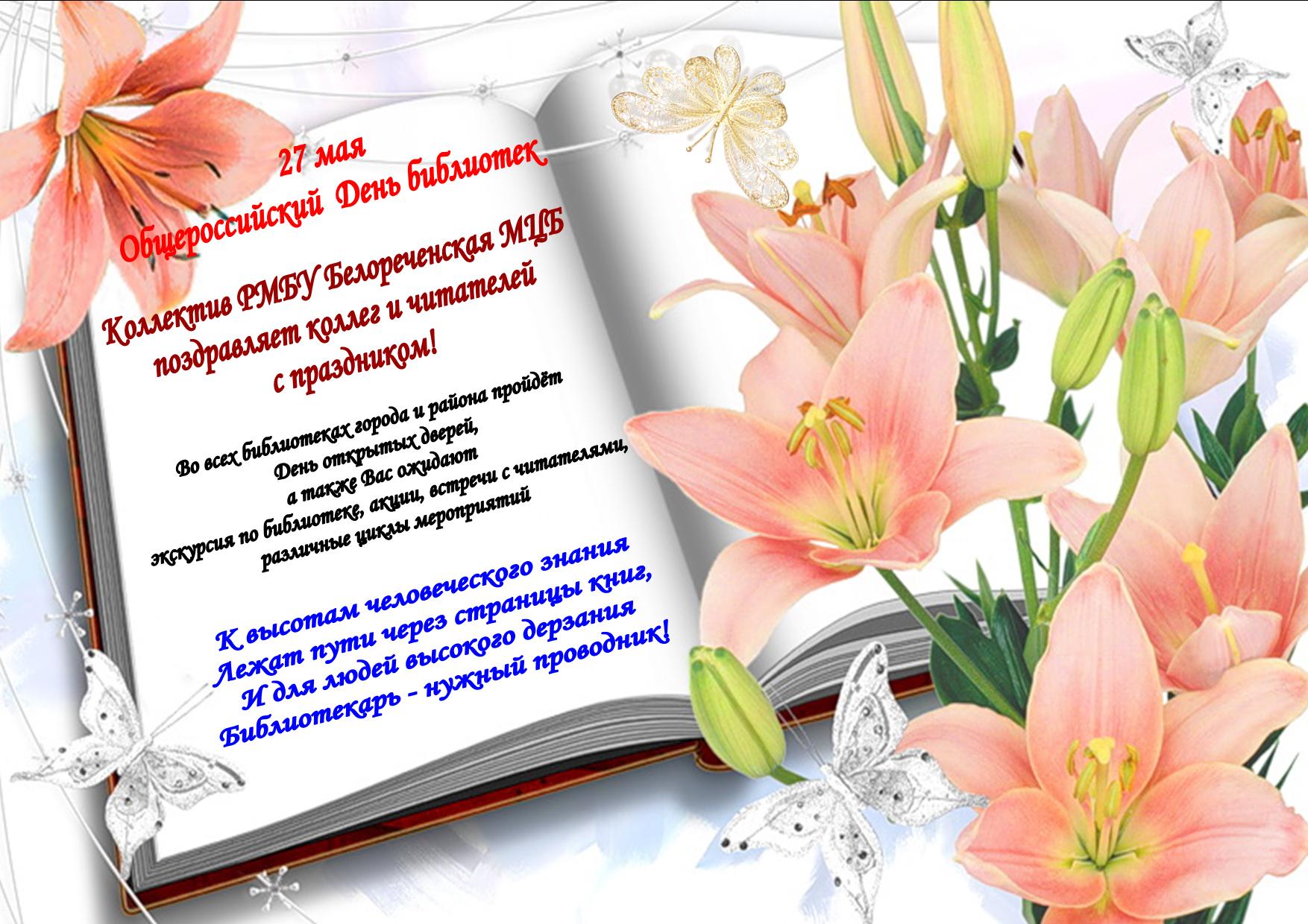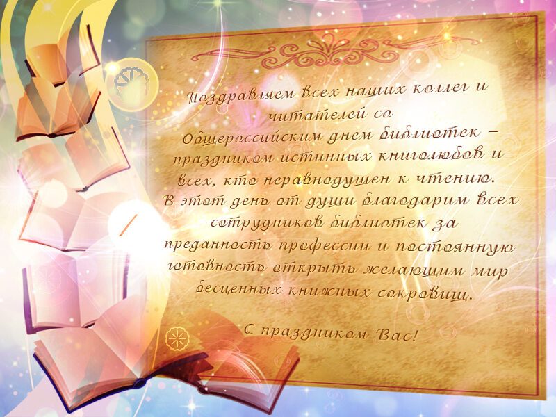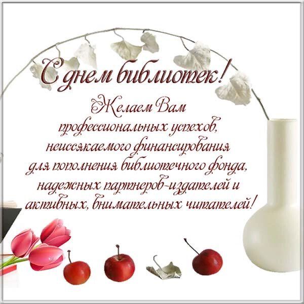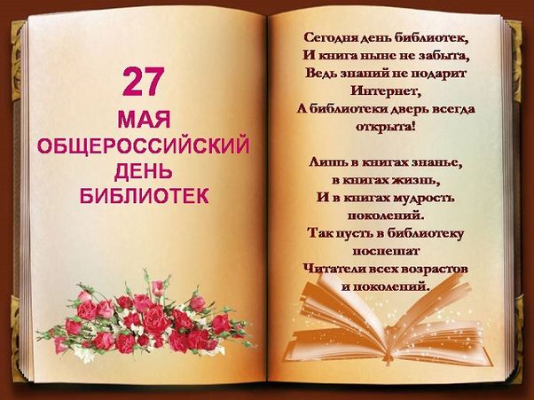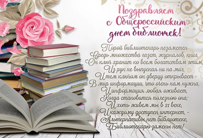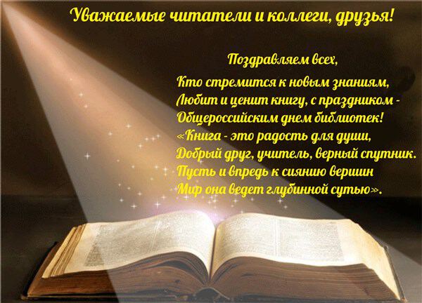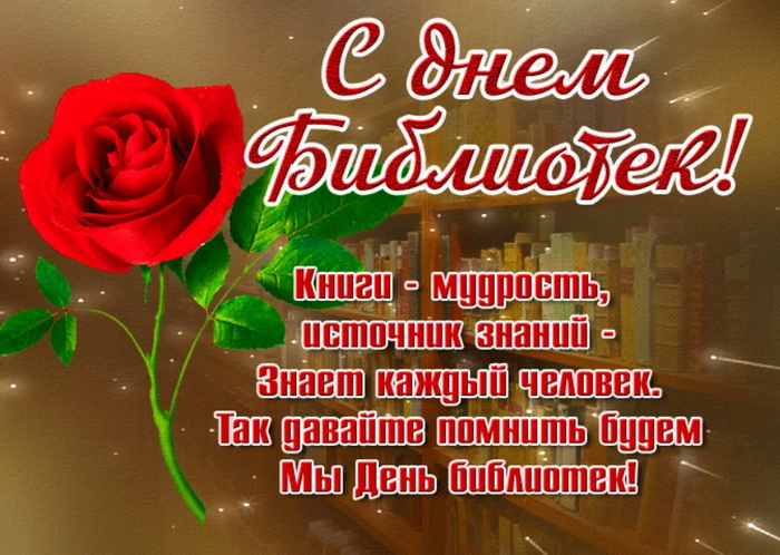 27 мая - День библиотекаря (Общероссийский день библиотек). Отправьте картинку с поздравлениями или красивую открытку с Днём библиотекаря родным, близким, друзьям или коллегам.