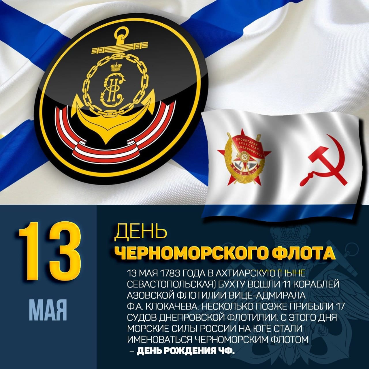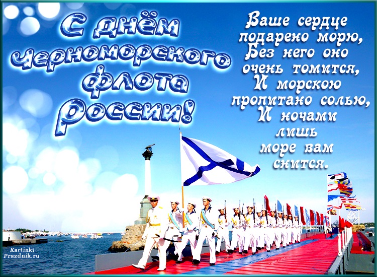 13 мая - День Черноморского флота ВМФ России. Отправьте картинку с поздравлениями или красивую открытку с Днём Черноморского флота родным, близким, друзьям или коллегам.
