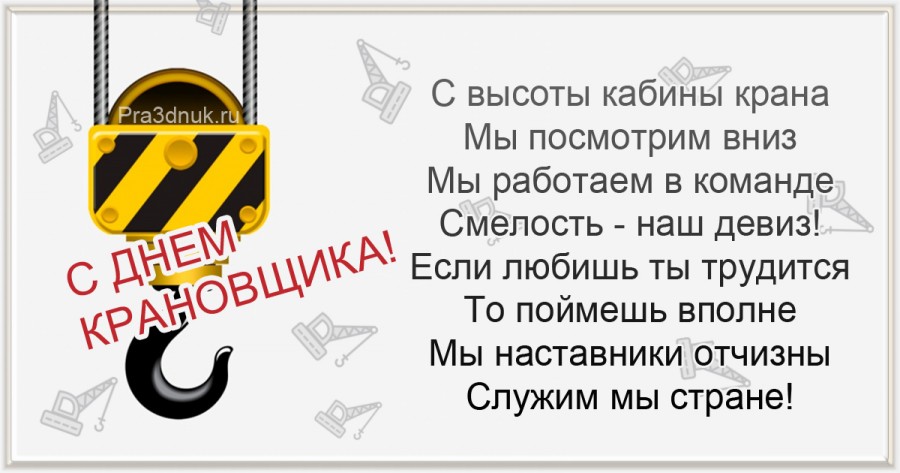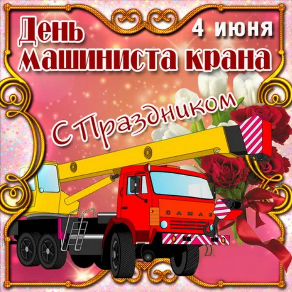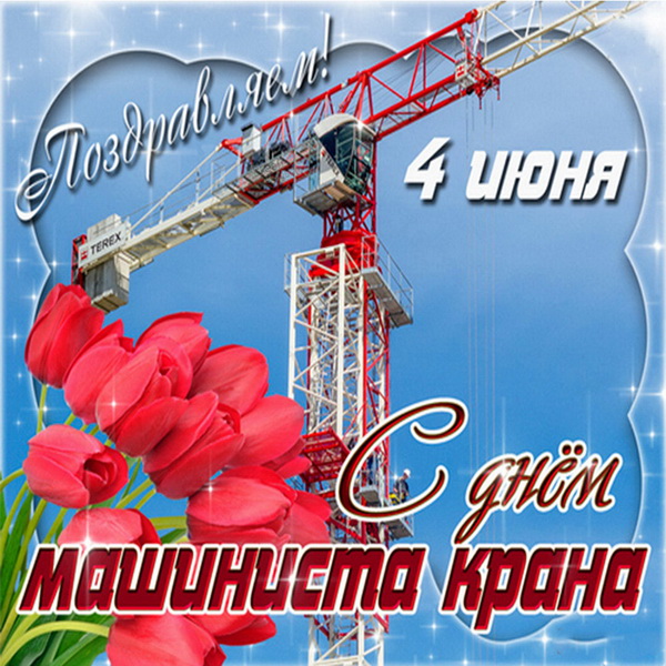 4 июня - День крановщика. Отправьте картинку с поздравлениями или красивую открытку с Днём крановщика родным, близким, друзьям или коллегам крановщикам.