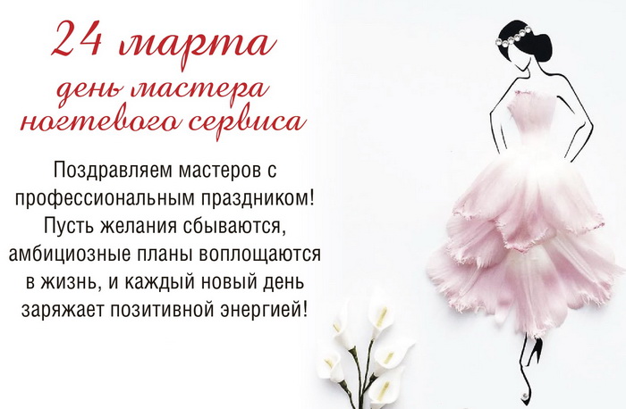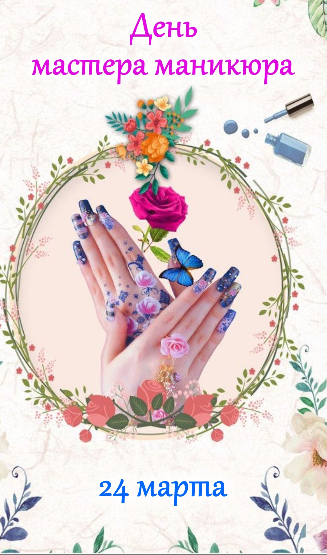 24 марта - День мастера маникюра. Отправьте картинку с поздравлениями или красивую открытку с Днём мастера ногтевого сервиса родным, близким, друзьям или коллегам.