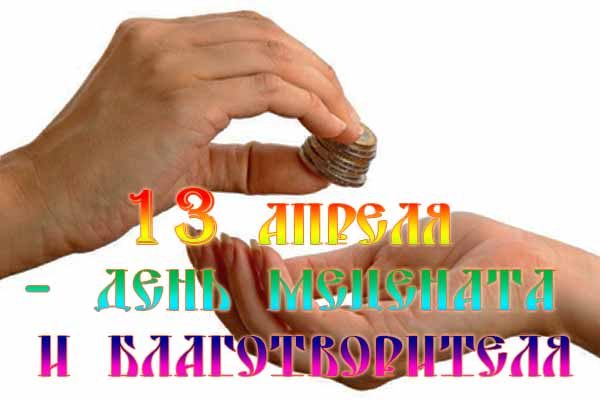 13 апреля - День мецената и благотворителя. Отправьте картинку с поздравлениями или красивую открытку с Днём мецената и благотворителя родным, близким, друзьям или коллегам.