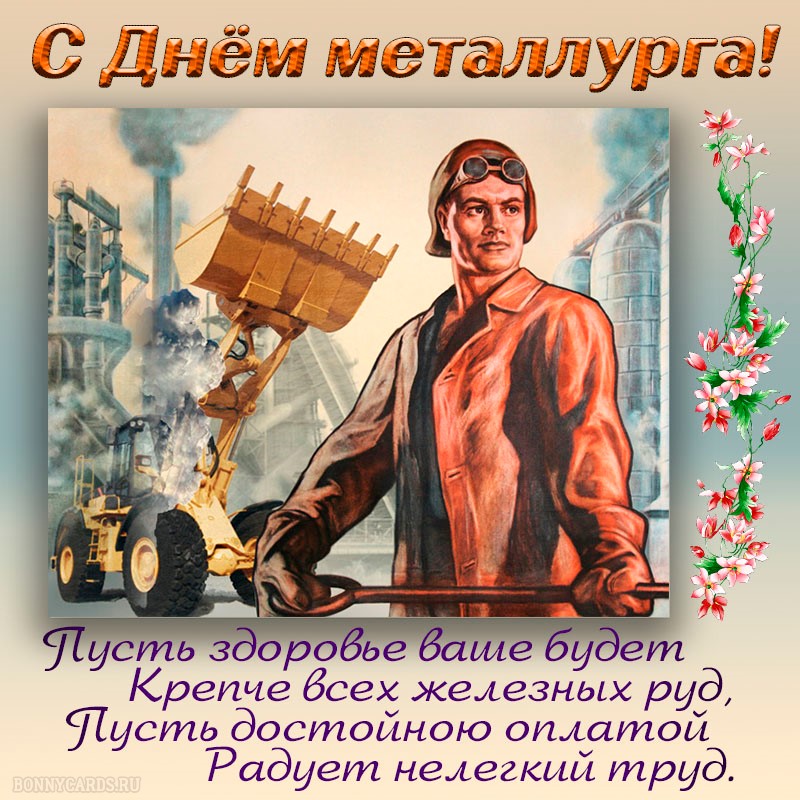 20 июля 2025 года в России отмечают День металлургов, который ежегодно празднуют в третье воскресенье июля. Мы поздравляем всех работников металлургической промышленности и дарим эти поздравительные открытки с Днем металлурга. Эти красивые и яркие изображения с поздравлениями и пожеланиями удобно скачать на нешм сайте и отправить в мессенджерах или в соцсетях. Среди этих открыток вы найдете также поздравления с изображением крупных метталургических комбинатов.