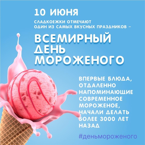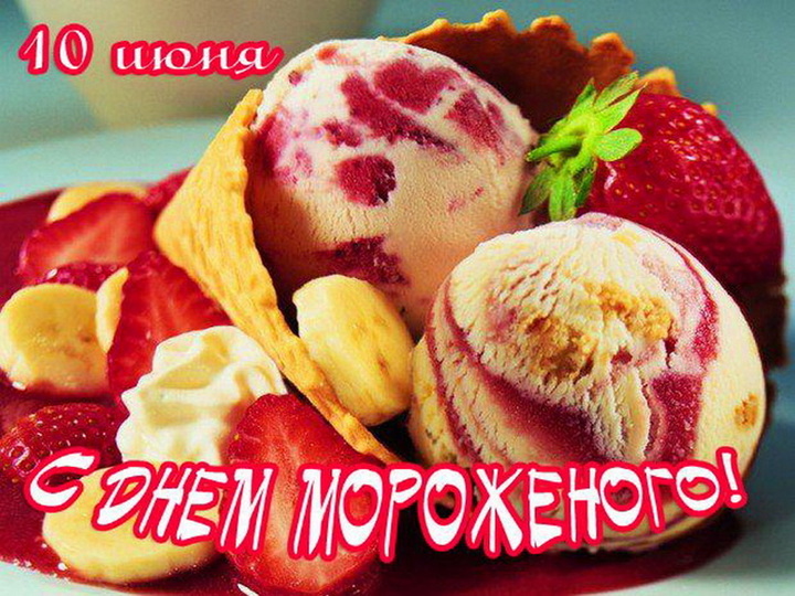 10 июня - Всемирный день мороженого. Отправьте картинку с поздравлениями или красивую открытку с Днём мороженого родным, близким, друзьям или коллегам.