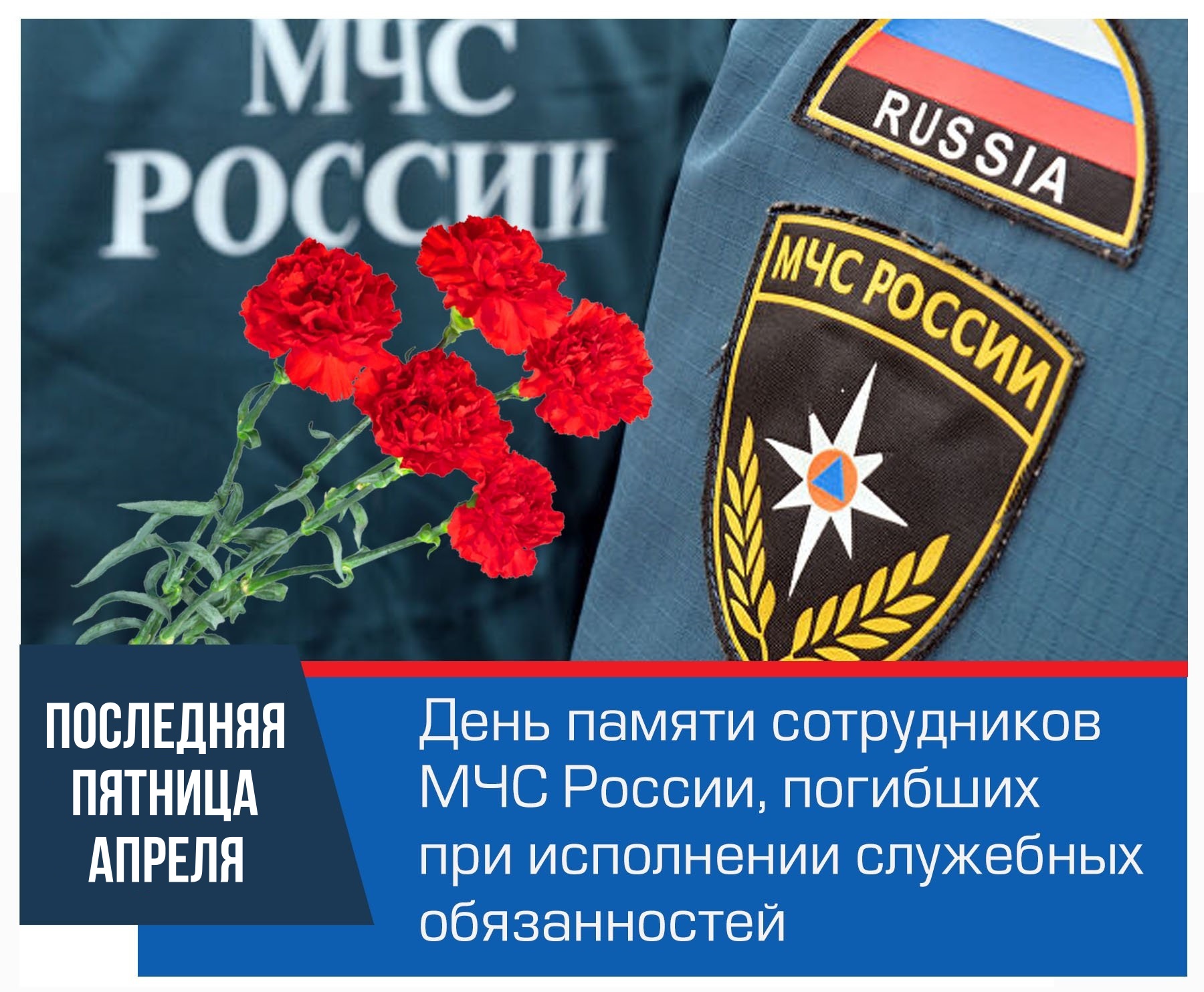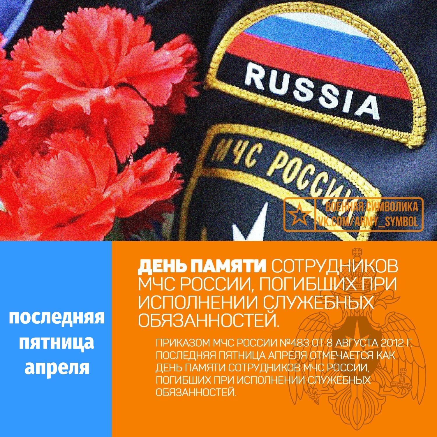 Последняя пятница апреля - День памяти сотрудников МЧС России, погибших при исполнении служебных обязанностей. Отправьте картинку с поздравлениями или красивую открытку с Днём памяти сотрудников МЧС России родным, близким, друзьям или коллегам.
