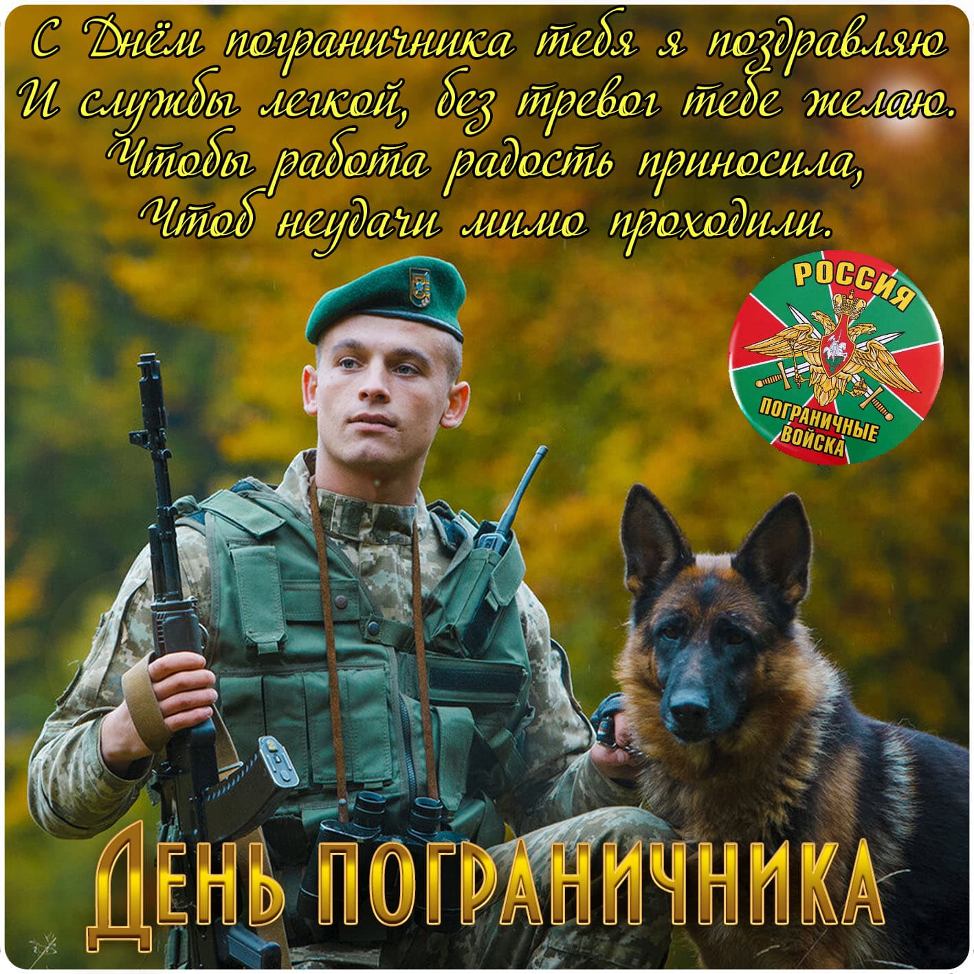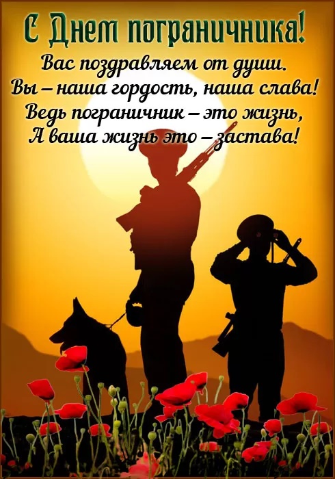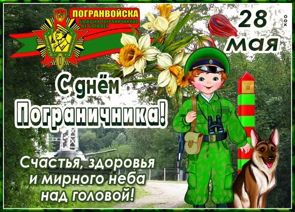 28 мая - День пограничника. Отправьте картинку с поздравлениями или красивую открытку с Днём пограничника родным, близким, друзьям или сослуживцам.