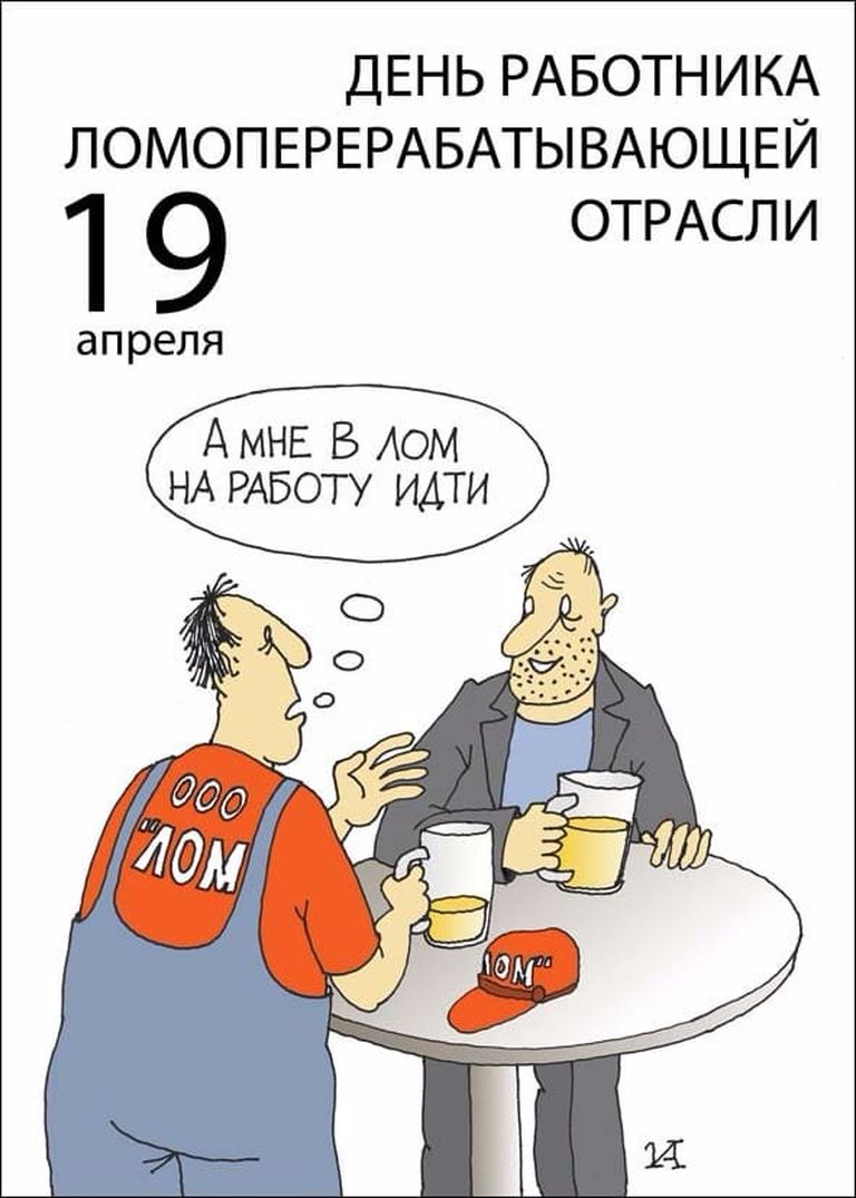 19 апреля - День работника ломоперерабатывающей отрасли России. Отправьте картинку с поздравлениями или красивую открытку с Днём металлоломщика родным, близким, друзьям или коллегам.