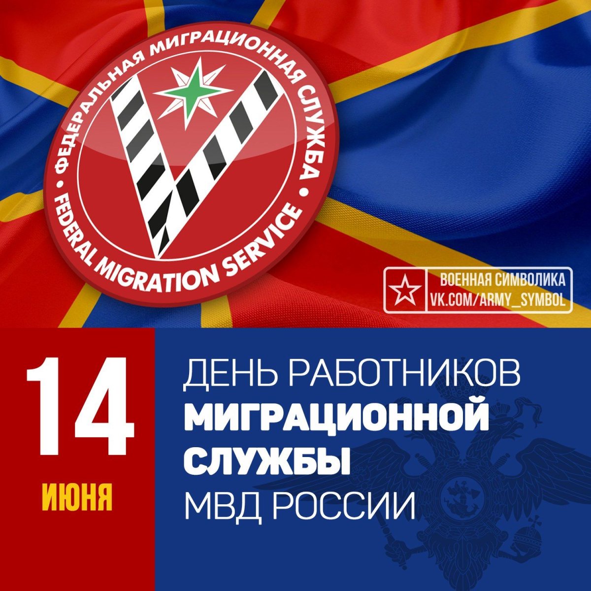 14 июня - День работника миграционной службы. Отправьте картинку с поздравлениями или красивую открытку с Днём работника миграционной службы родным, близким, друзьям или коллегам.