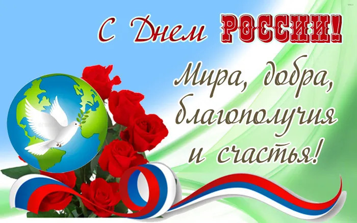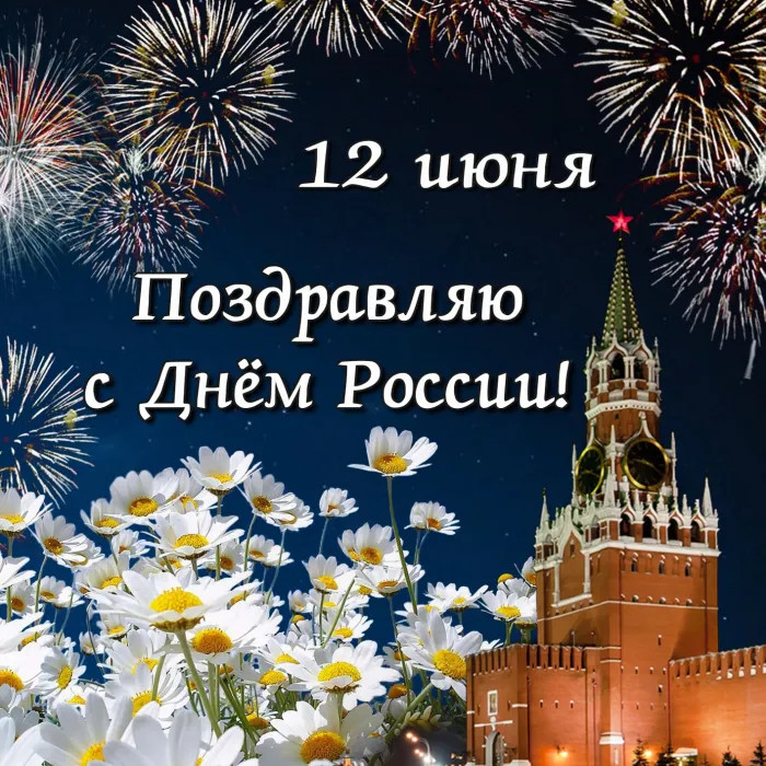 12 июня - День России. Отправьте картинку с поздравлениями или красивую открытку с Днём России родным, близким, друзьям или коллегам.
