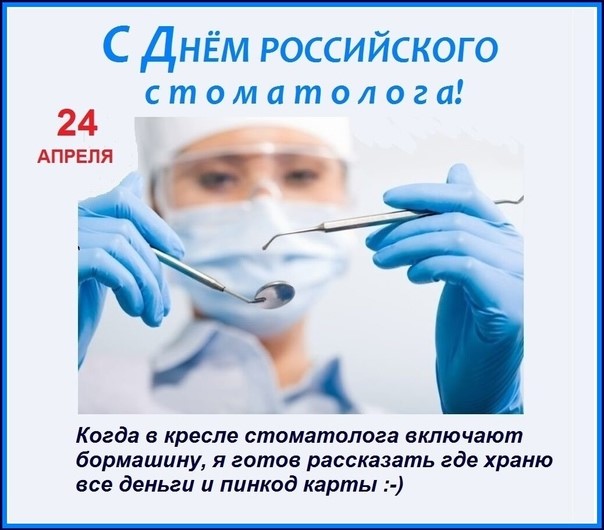 24 апреля - День российского стоматолога. Отправьте картинку с поздравлениями или красивую открытку с Днём российского стоматолога родным, близким, друзьям или коллегам.