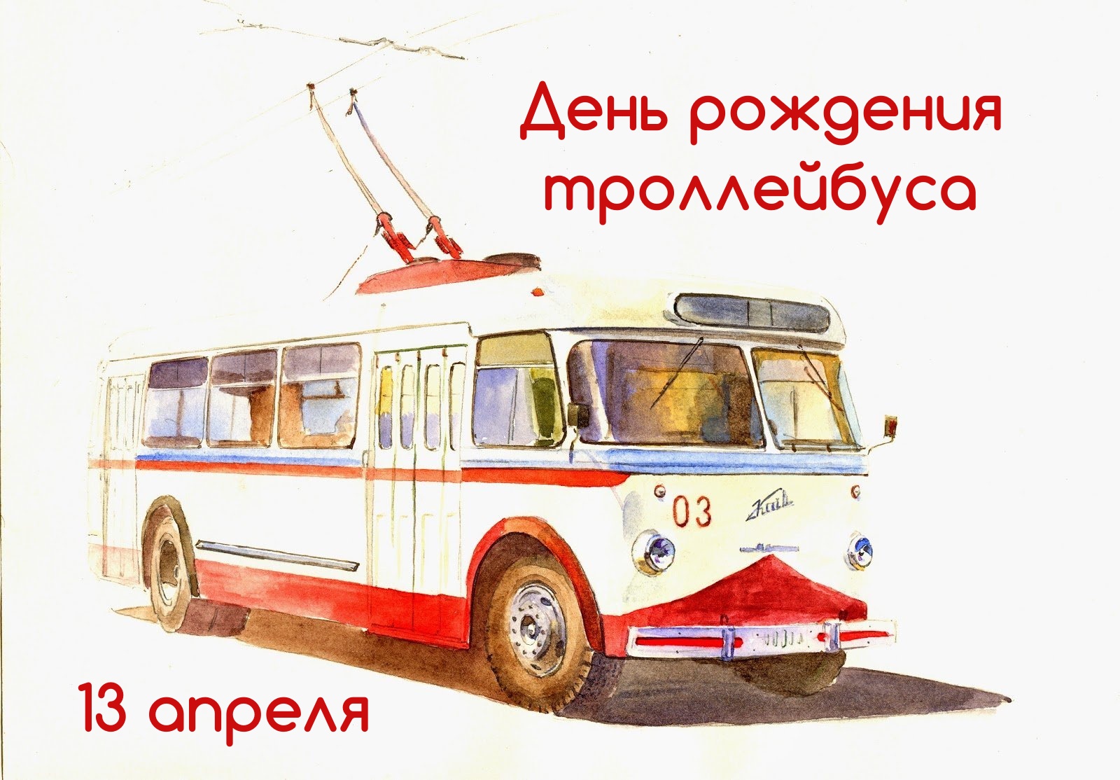 13 апреля - День рождения троллейбуса. Отправьте картинку с поздравлениями или красивую открытку с Днём рождения троллейбуса родным, близким, друзьям или коллегам.