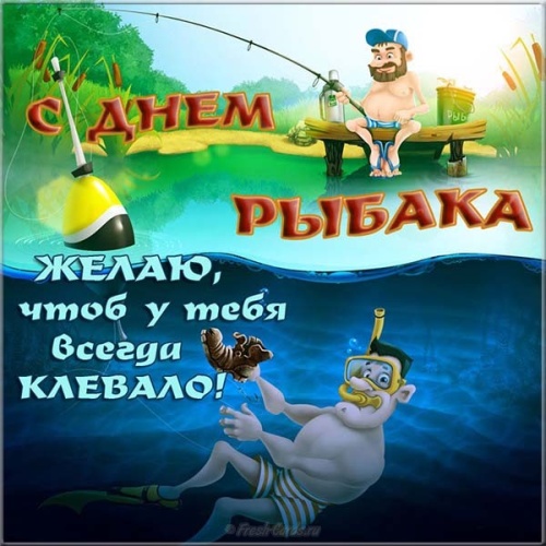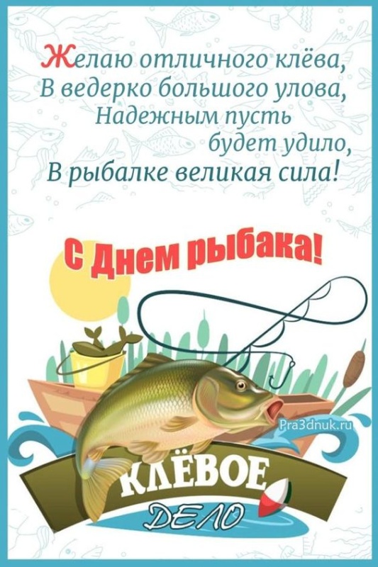 Во второе воскресенье июля, в России отмечают День рыбака. Это профессиональный праздник тех, чья деятельность неразрывно связана с рыбным промыслом. Также праздник отмечают все рыболовы-любители. Специально для поздравления всех причастных мы собрали красивые и прикольные картинки и открытки с днем рыбака, которые можно скачать совершенно бесплатно.