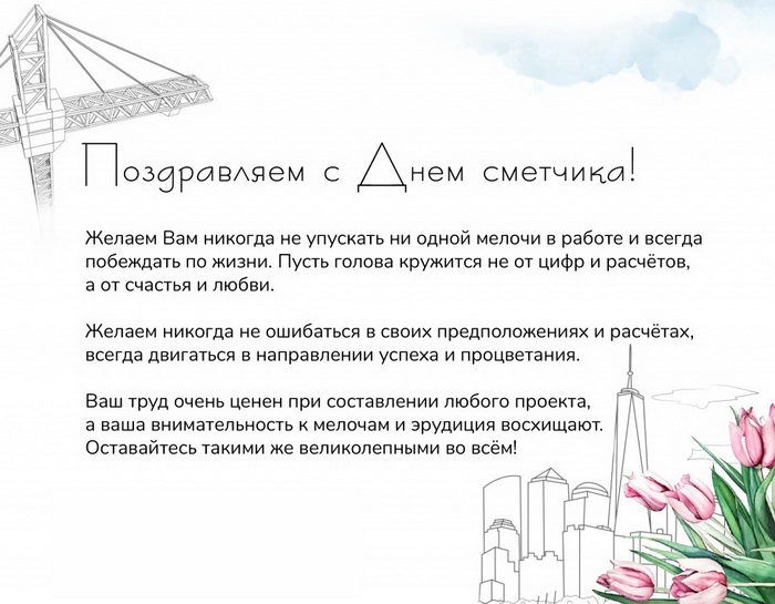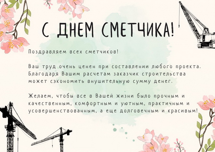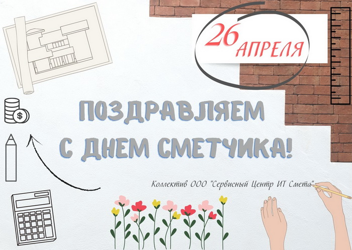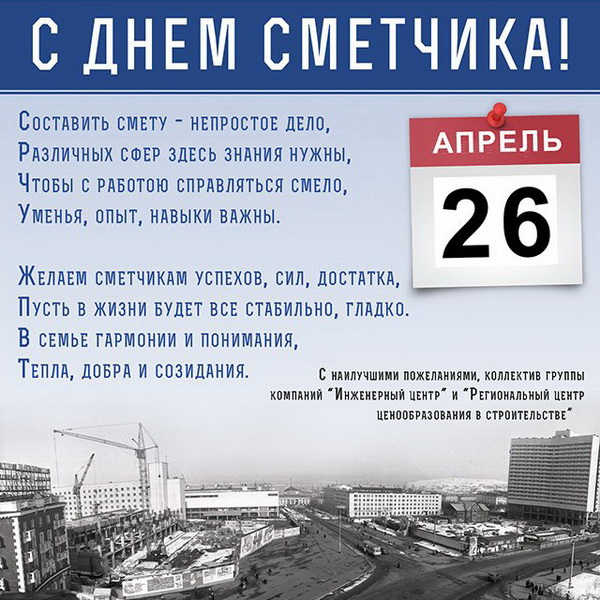 26 апреля - День сметчика. Отправьте картинку с поздравлениями или красивую открытку с Днём сметчика родным, близким, друзьям или коллегам.