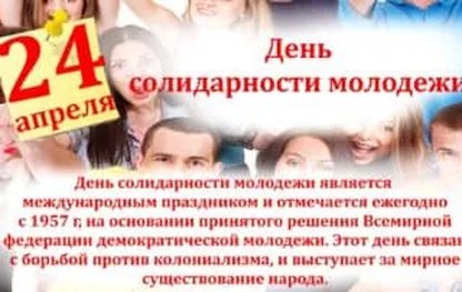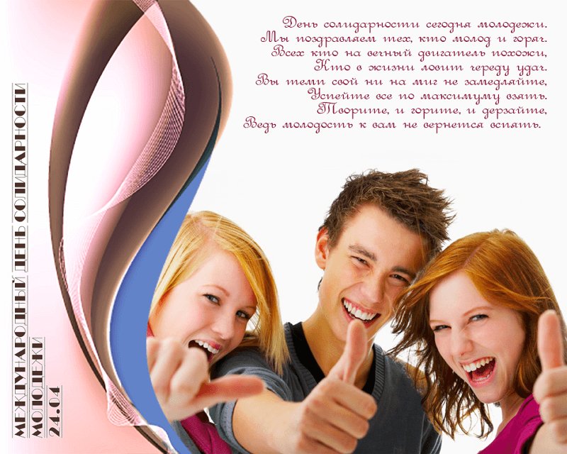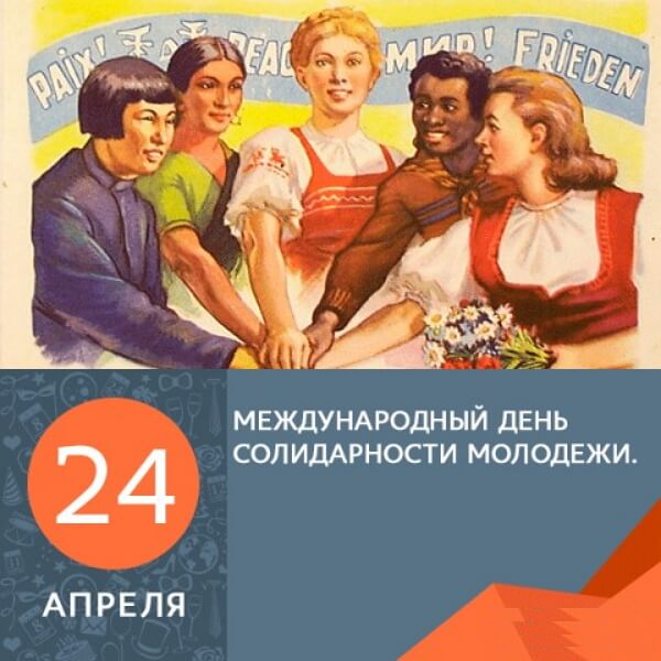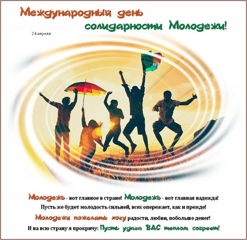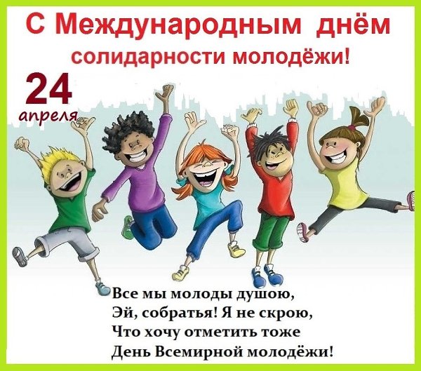 24 апреля - Международный день солидарности молодежи. Отправьте картинку с поздравлениями или красивую открытку с Днём солидарности молодежи родным, близким, друзьям или коллегам.