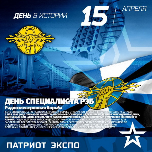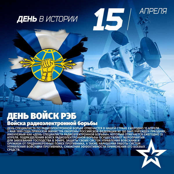 15 апреля - День специалиста по радиоэлектронной борьбе (РЭБ). Отправьте картинку с поздравлениями или красивую открытку с Днём РЭБ родным, близким, друзьям или коллегам.