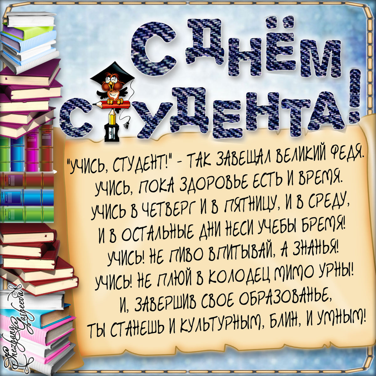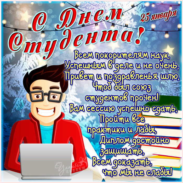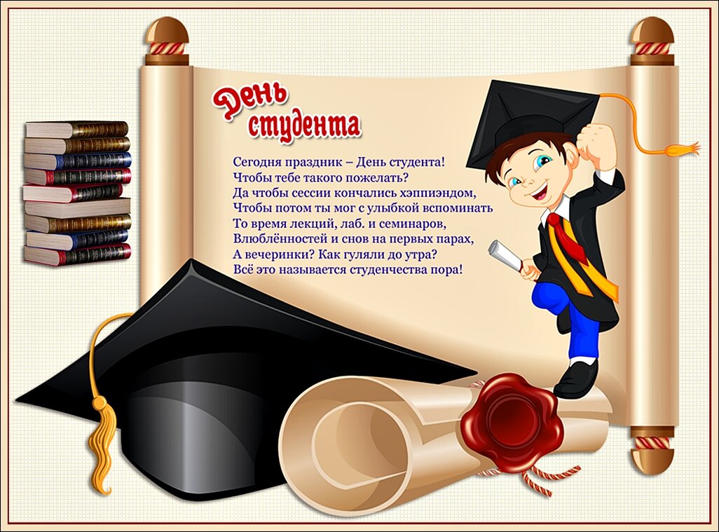 День студента отмечают 25 января в Татьянин день. Мы собрали самые прикольные и красивые картинки с Днем студента, а также гифки с пожеланиями и анимированные открытки с поздравлениями.