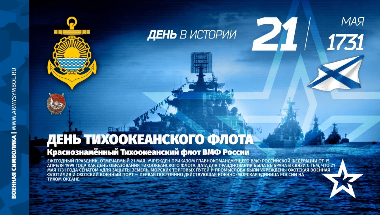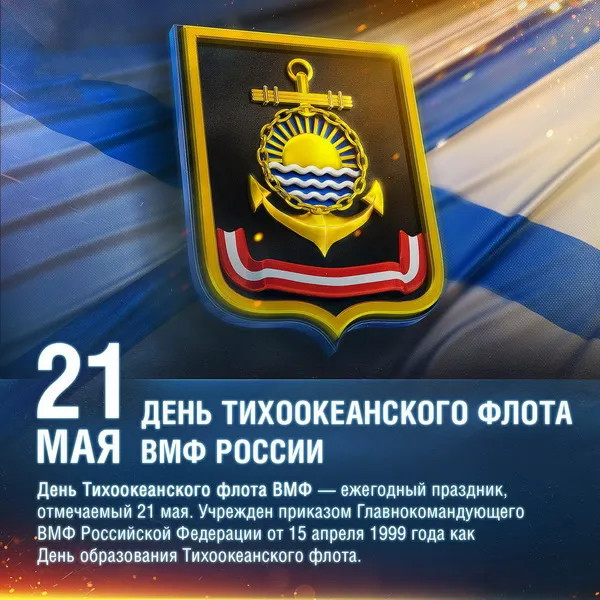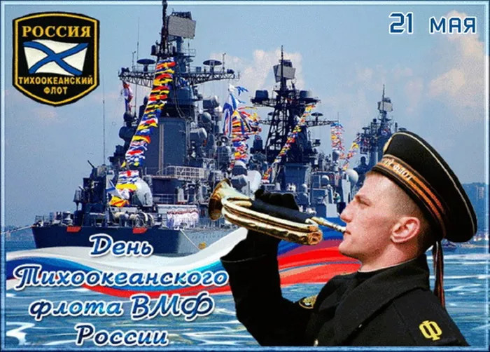 21 мая - День Тихоокеанского флота ВМФ России. Отправьте картинку с поздравлениями или красивую открытку с Днём Тихоокеанского флота родным, близким, друзьям или коллегам.