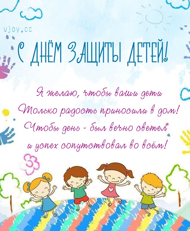 1 июня - День защиты детей. Отправьте картинку с поздравлениями или красивую открытку с Днём защиты детей родным, близким, друзьям или коллегам у которых есть дети.