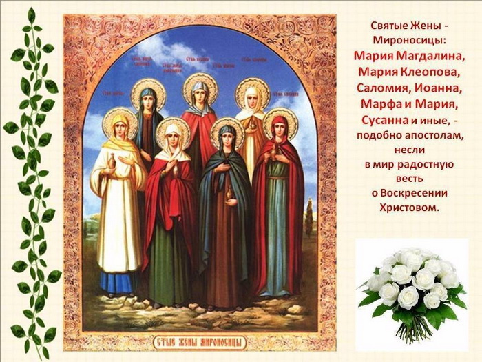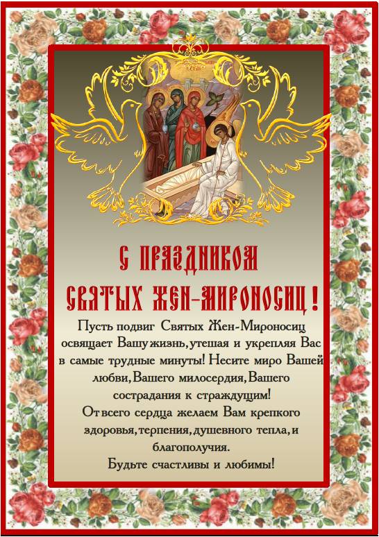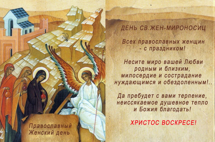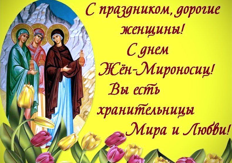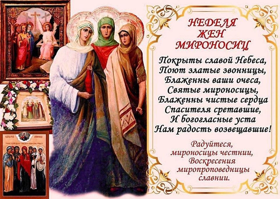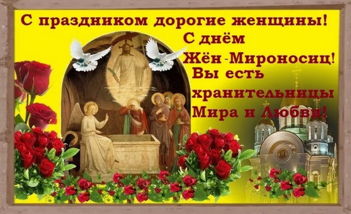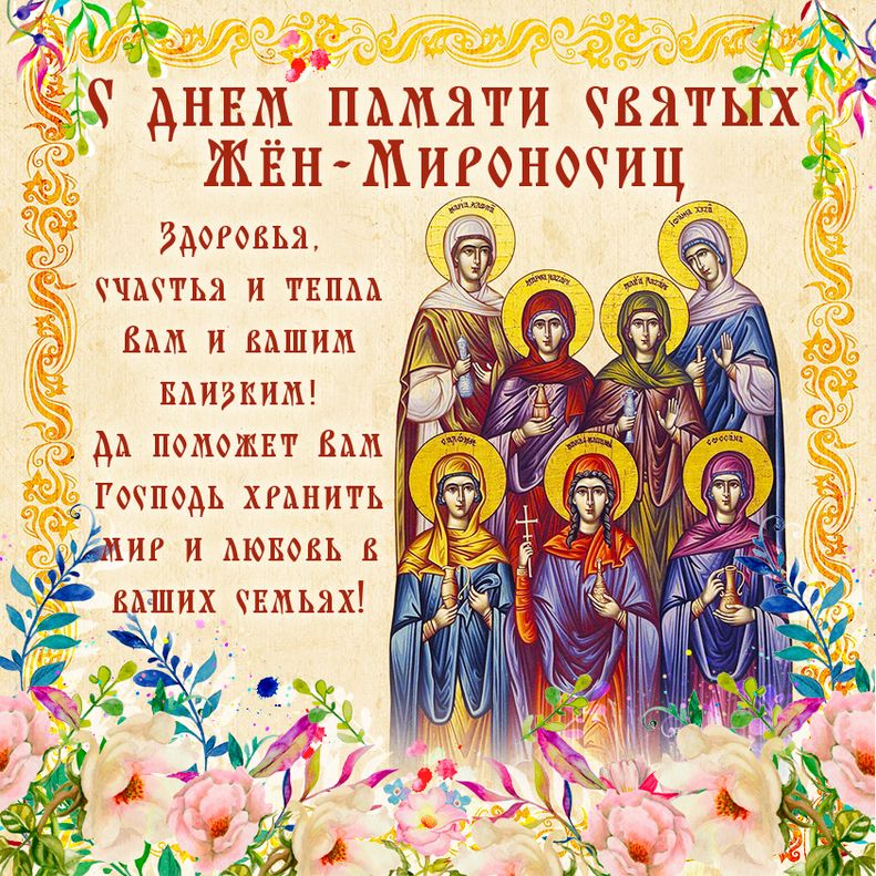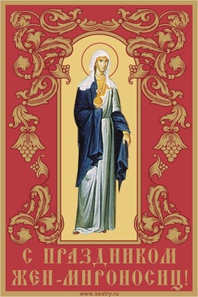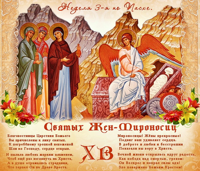 День святых жен-мироносиц - второе воскресенье после Пасхи. Отправьте картинку с поздравлениями или красивую открытку с Днём жен-мироносиц родным, близким, друзьям или коллегам.