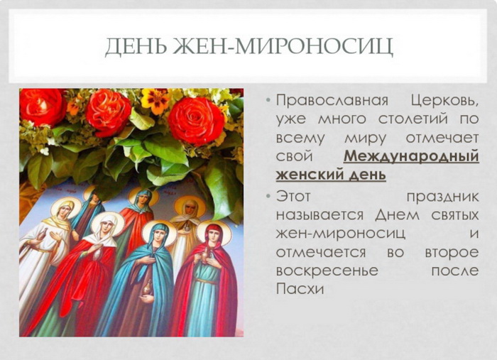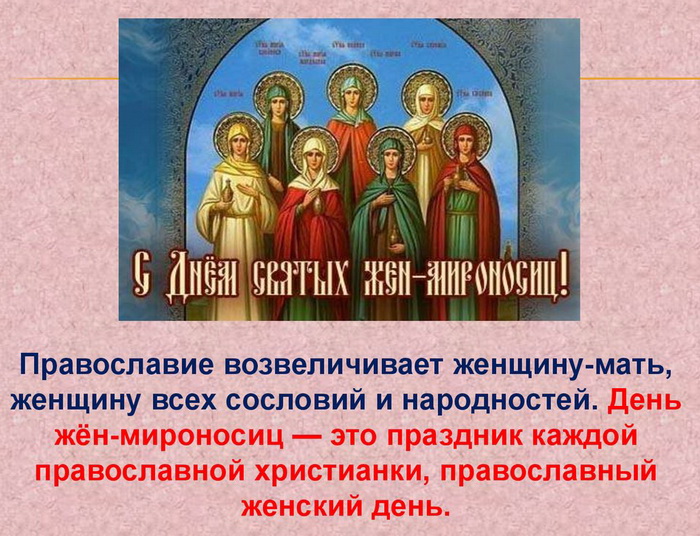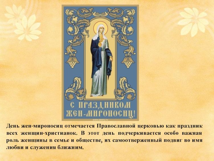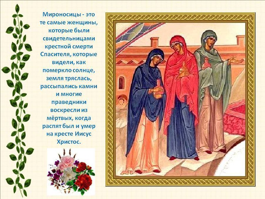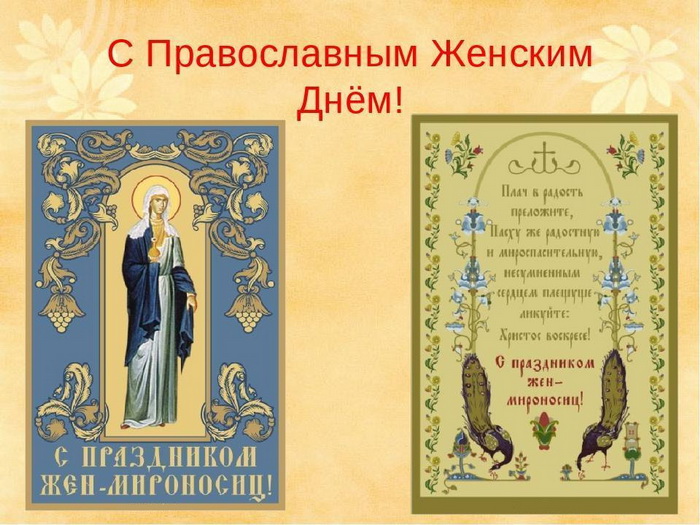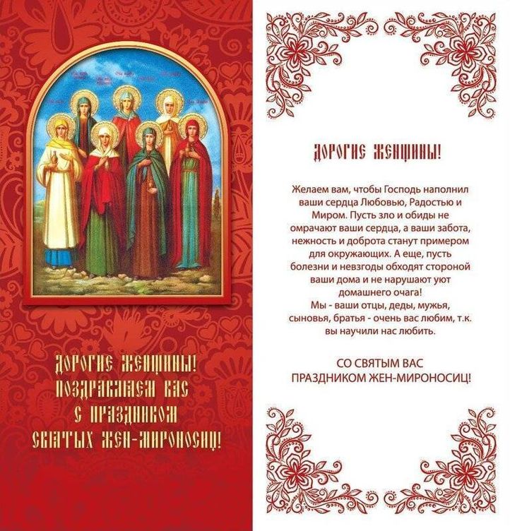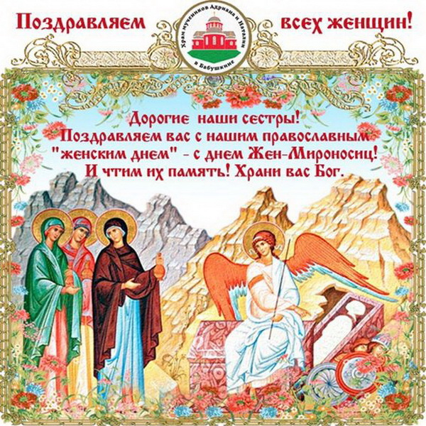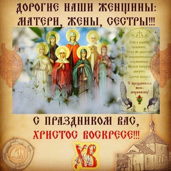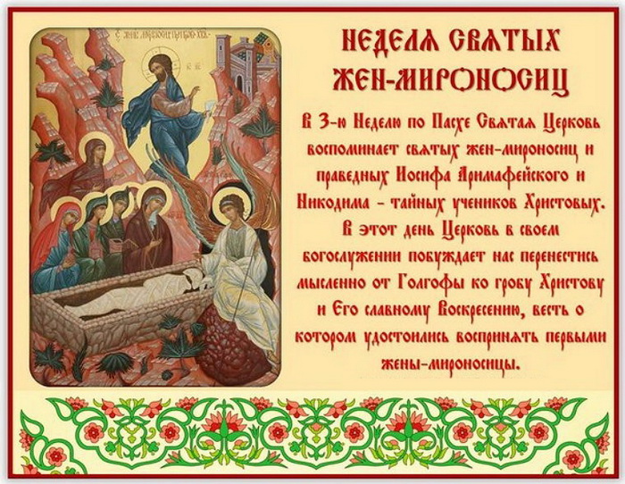 День святых жен-мироносиц - второе воскресенье после Пасхи. Отправьте картинку с поздравлениями или красивую открытку с Днём жен-мироносиц родным, близким, друзьям или коллегам.