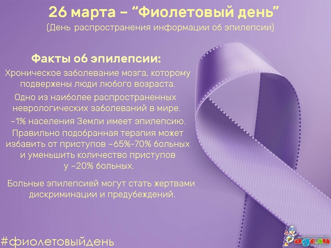 26 марта - Фиолетовый день (День больных эпилепсией). Отправьте картинку с надписью или красивую открытку с Днём больных эпилепсией (с Фиолетовым днём) родным, близким, друзьям или коллегам.