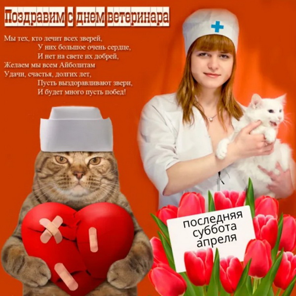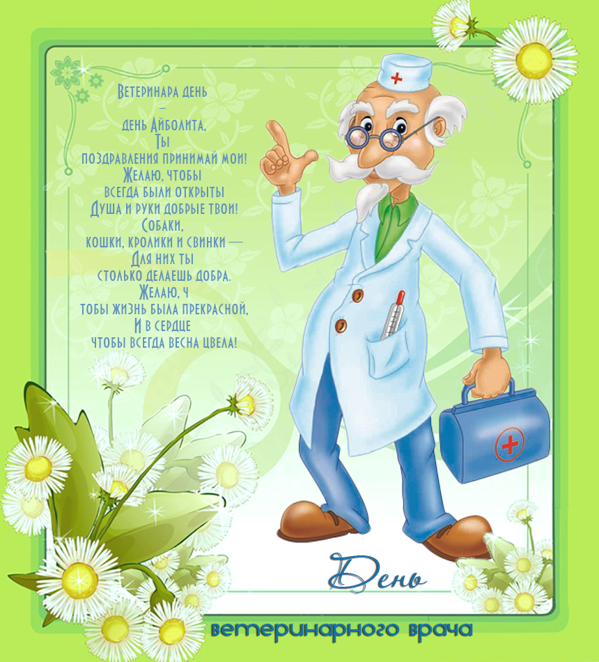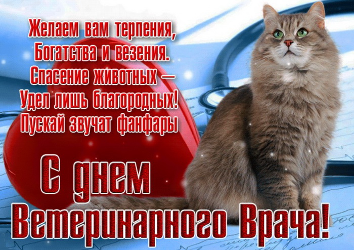 29 апреля - Международный день ветеринарного врача. Отправьте картинку с поздравлениями или красивую открытку с Днём ветеринарного врача родным, близким, друзьям или коллегам.