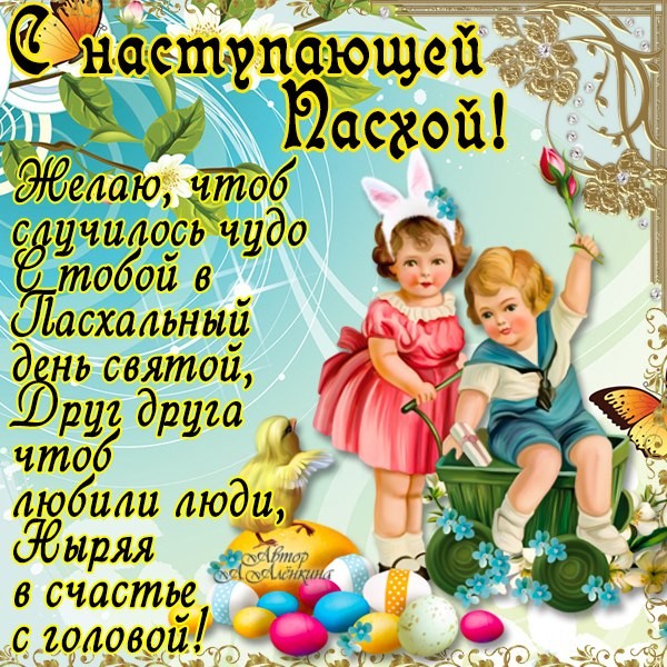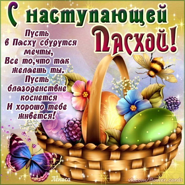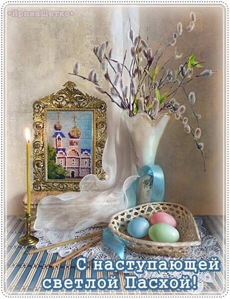 Отправьте картинку с поздравлениями или красивую открытку с наступающей Пасхой родным, близким, друзьям или коллегам.