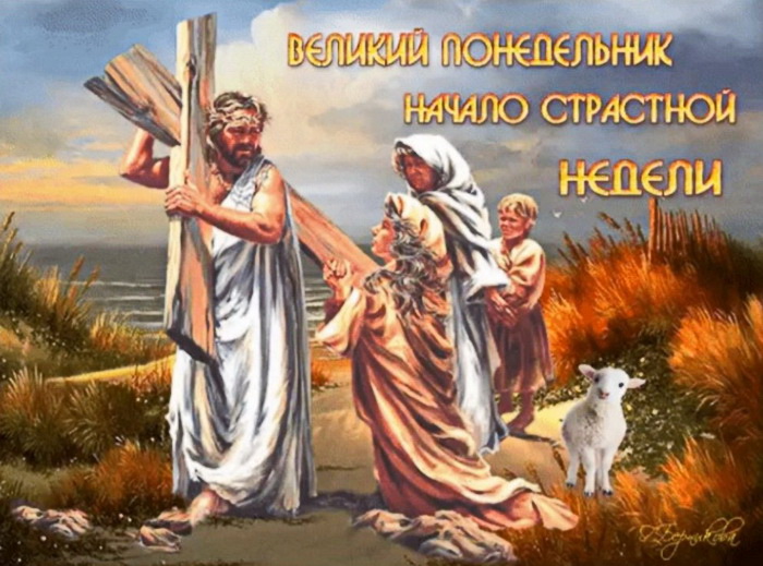 Великий Понедельник - начало Страстной недели. Отправьте картинку с поздравлениями или красивую открытку с Великим понедельником родным, близким, друзьям или коллегам.