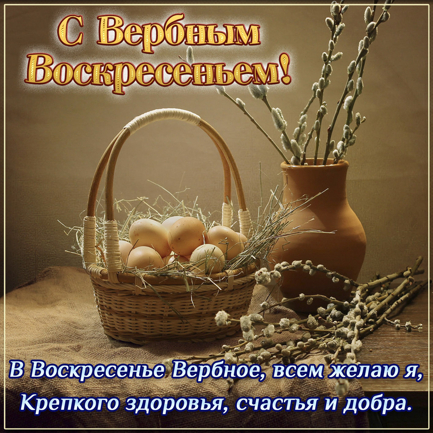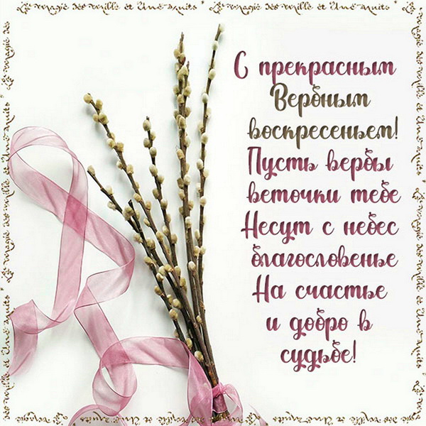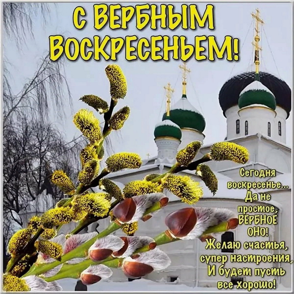 Вербное воскресенье (Вход Господень в Иерусалим) – православный праздник, который верующие христиане отмечают за неделю до Пасхи, т.е. в шестое воскресенье Великого поста. Отправьте картинку с поздравлениями или красивую открытку с Вербным воскресеньем родным, близким, друзьям или коллегам.