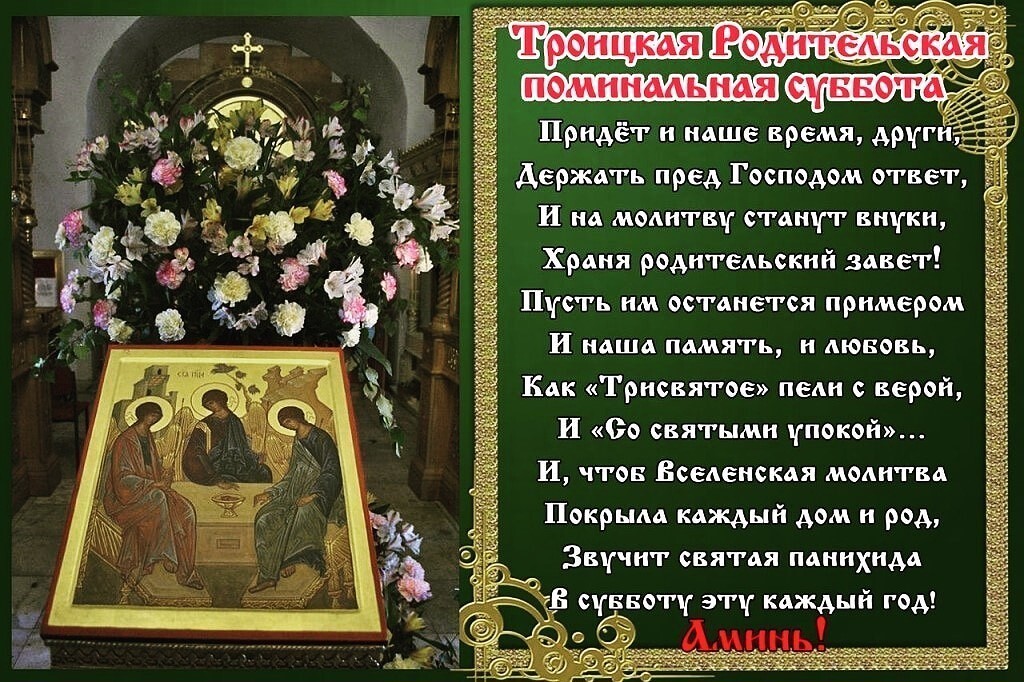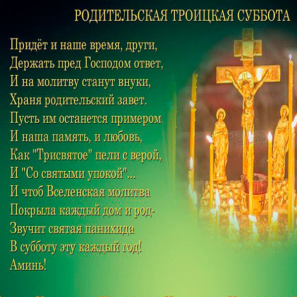 7 июня 2025 года - Троицкая родительская суббота. Отправьте картинку с надписью или красивую открытку с Троицкой родительской субботой родным, близким, друзьям или коллегам.