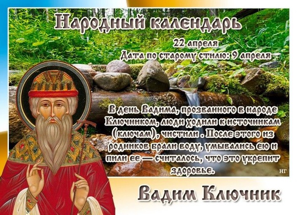 22 апреля - Вадим Ключник. Отправьте картинку с поздравлениями или красивую открытку с Днём Вадима Ключника родным, близким, друзьям или коллегам.